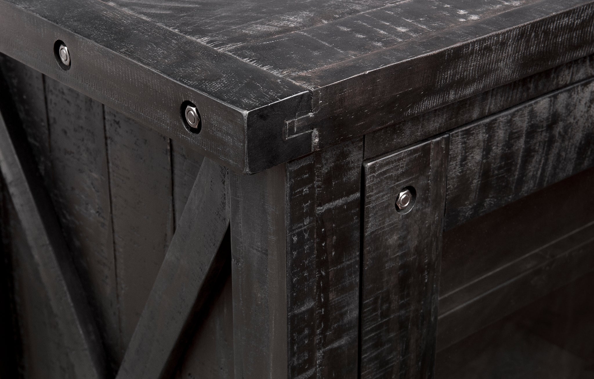 • Unique cafe finish is a dark gray with just enough opacity to show clearly defined wood grain and a low-sheen lacquer that enhances depth and accentuates saw marks and rough spots without looking glossy