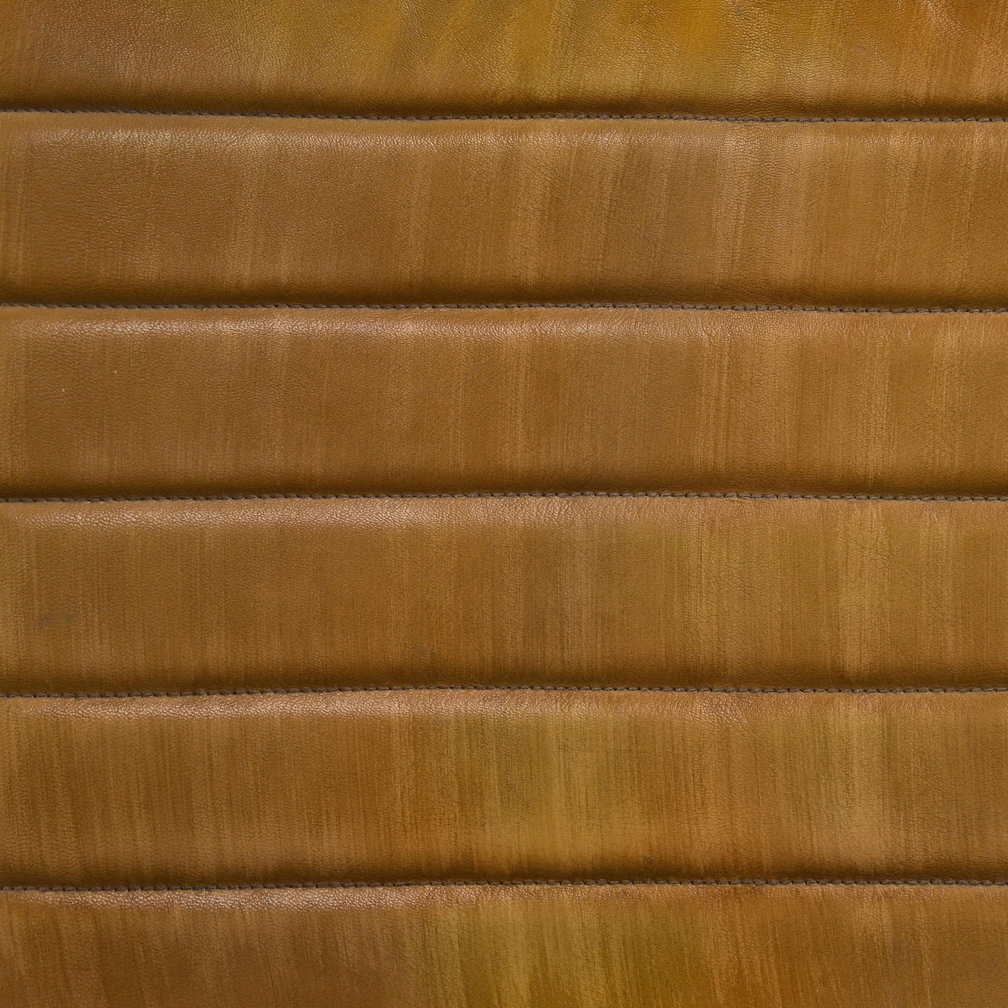 • Four comfortable counter stools with scoop seats and thick back, both with horizontally channeled leather upholstery, metal framing with iconic retro slender rounded, splayed legs
