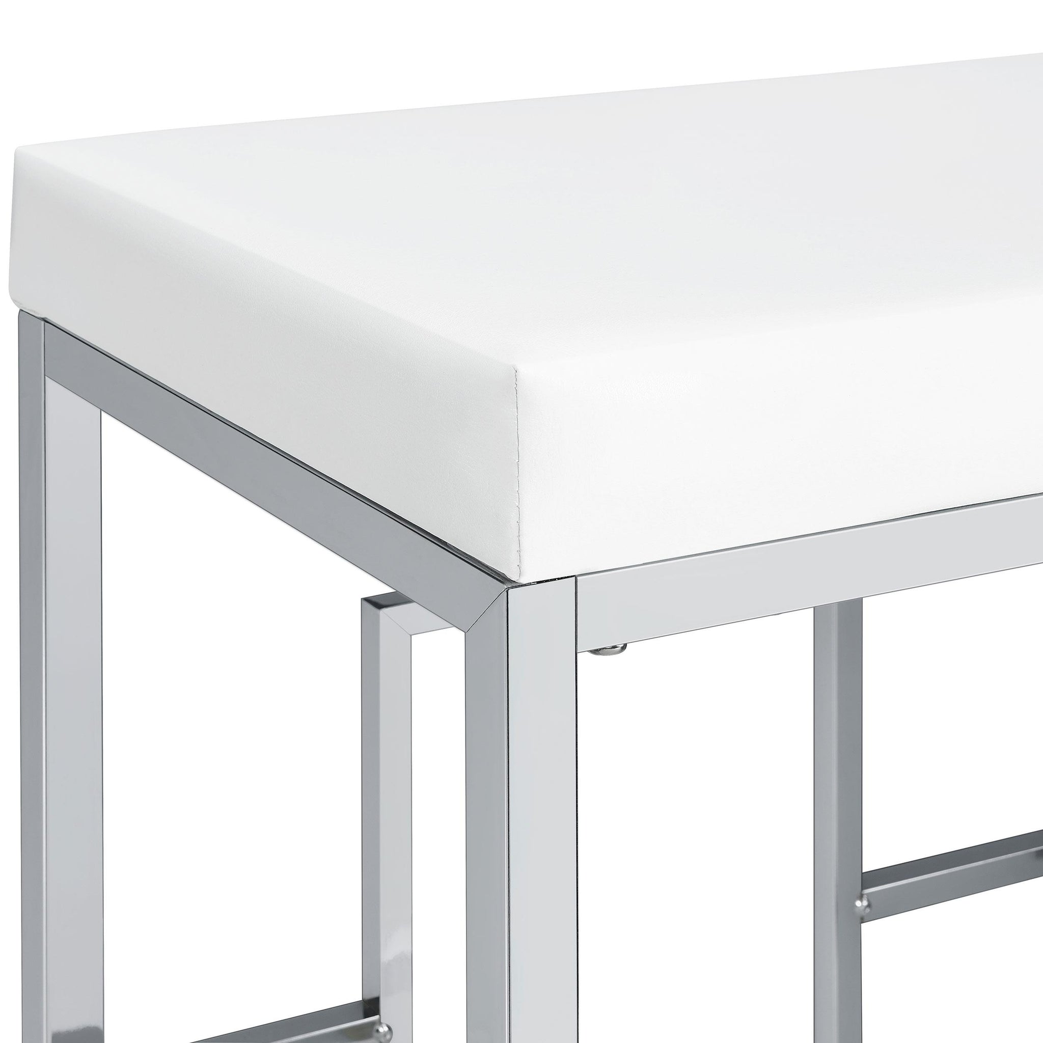 • Silver metal finish perfectly complemented with white tabletops and faux leather for a crisp look