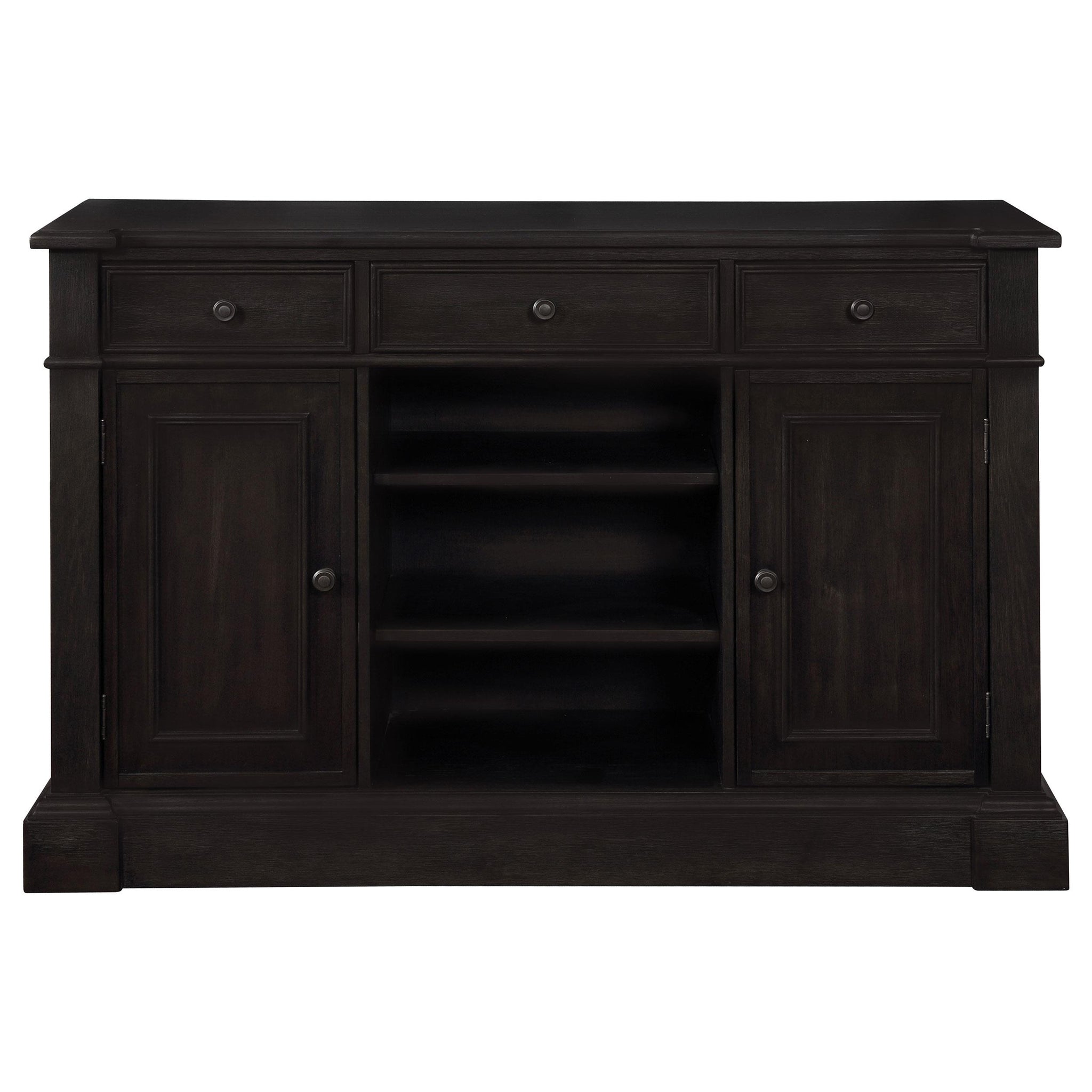 - Sideboard includes enclosed storage and adjustable open display shelves