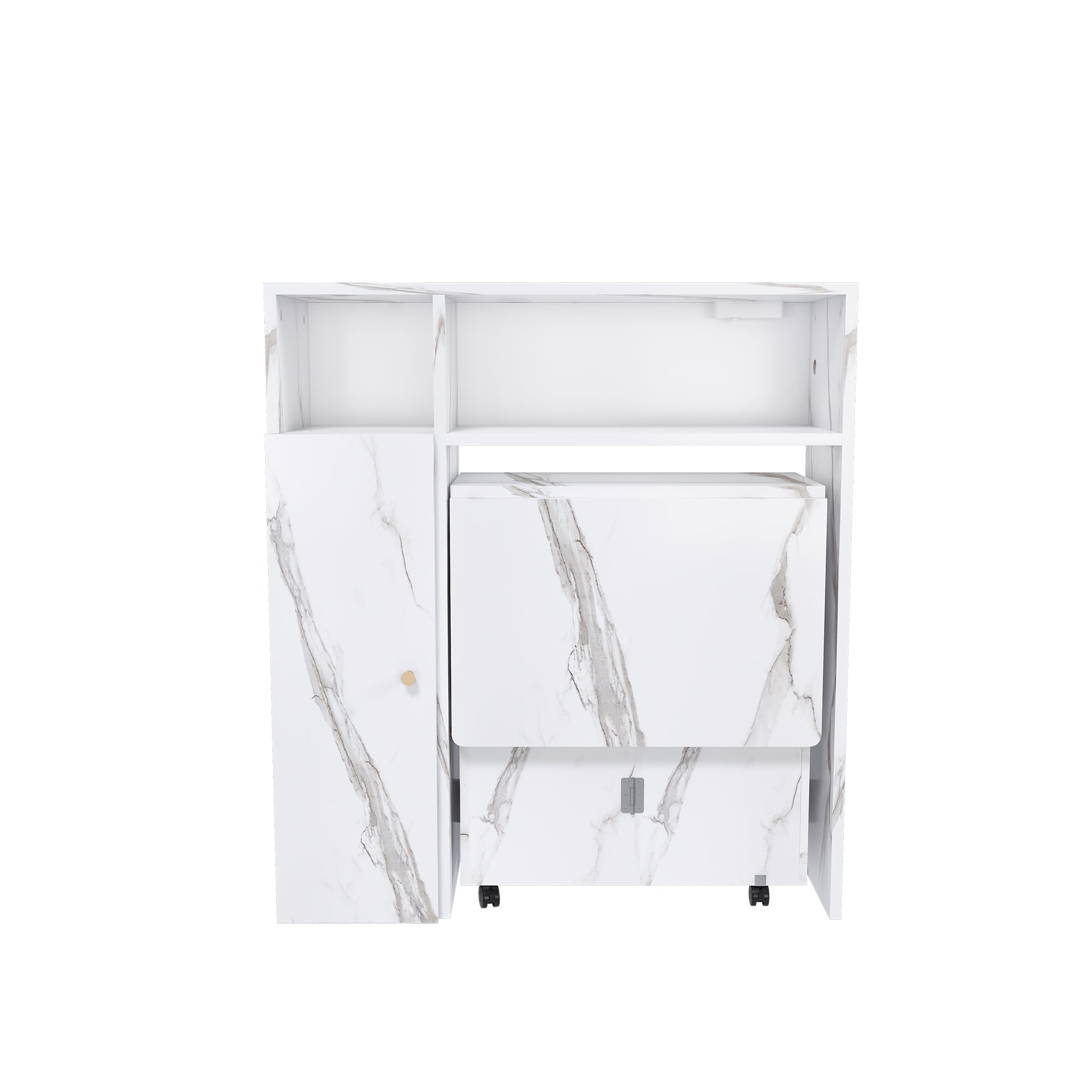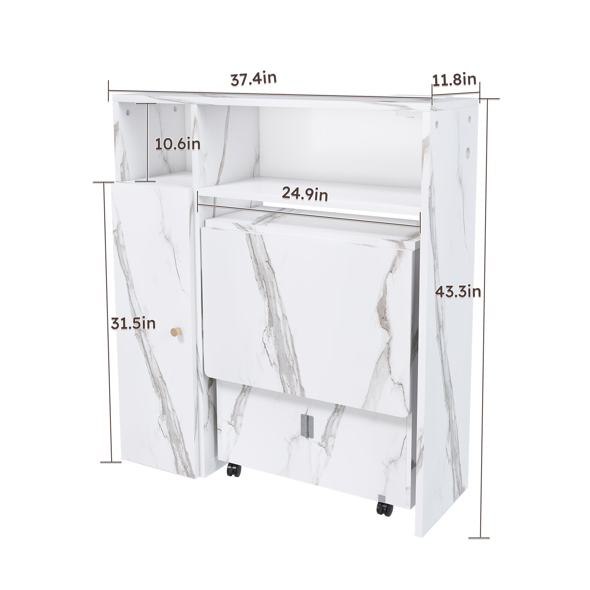 Folding Dining Table with Wall-Mounted Sideboard & Storage in White and Gray