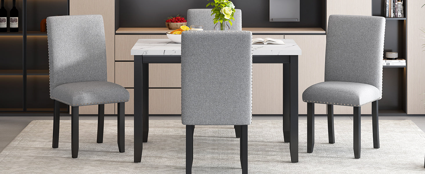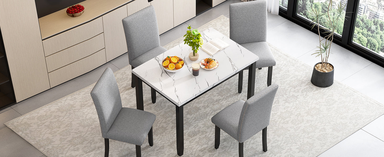 Elegance and Modern Style: The combination of rubber wood frame and marble table top adds a modern sense to kitchen table and chairs set of 4, and the artificial marble table top of the small dining table has a unique glossy appearance, which is most suitable for any dining space, kitchen area, etc.