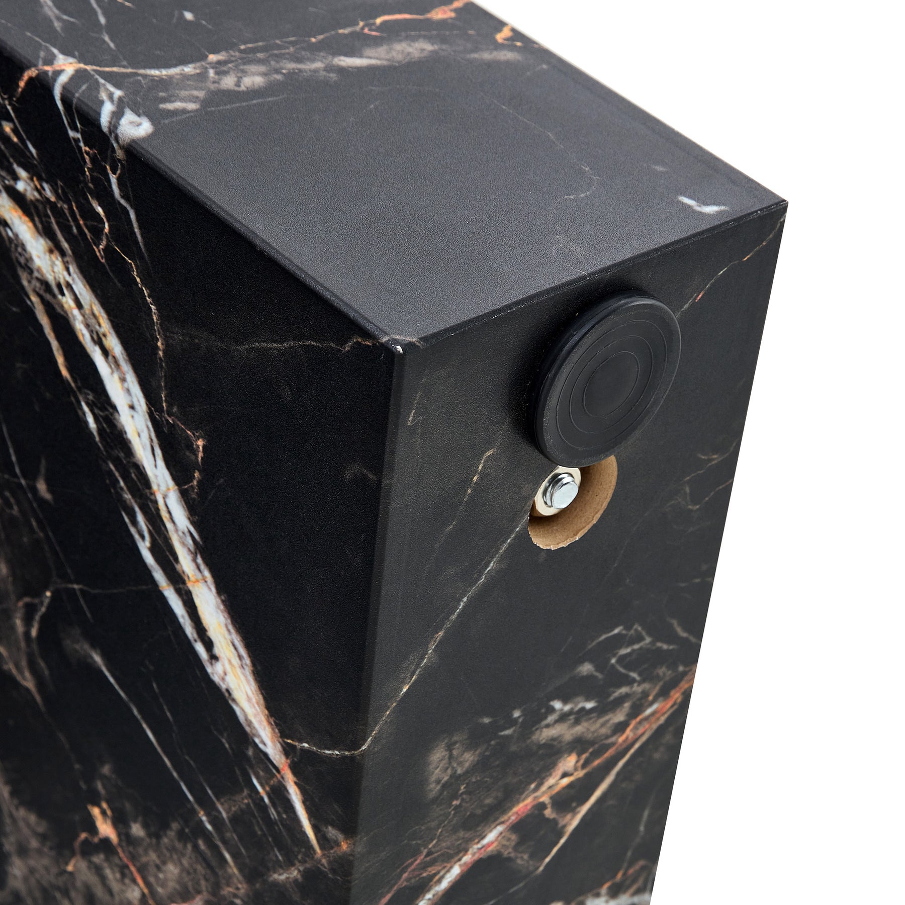 The tabletop features a sleek black patterned finish with exquisite texture, offering a subtle sense of luxury that adds an elegant touch to any room.