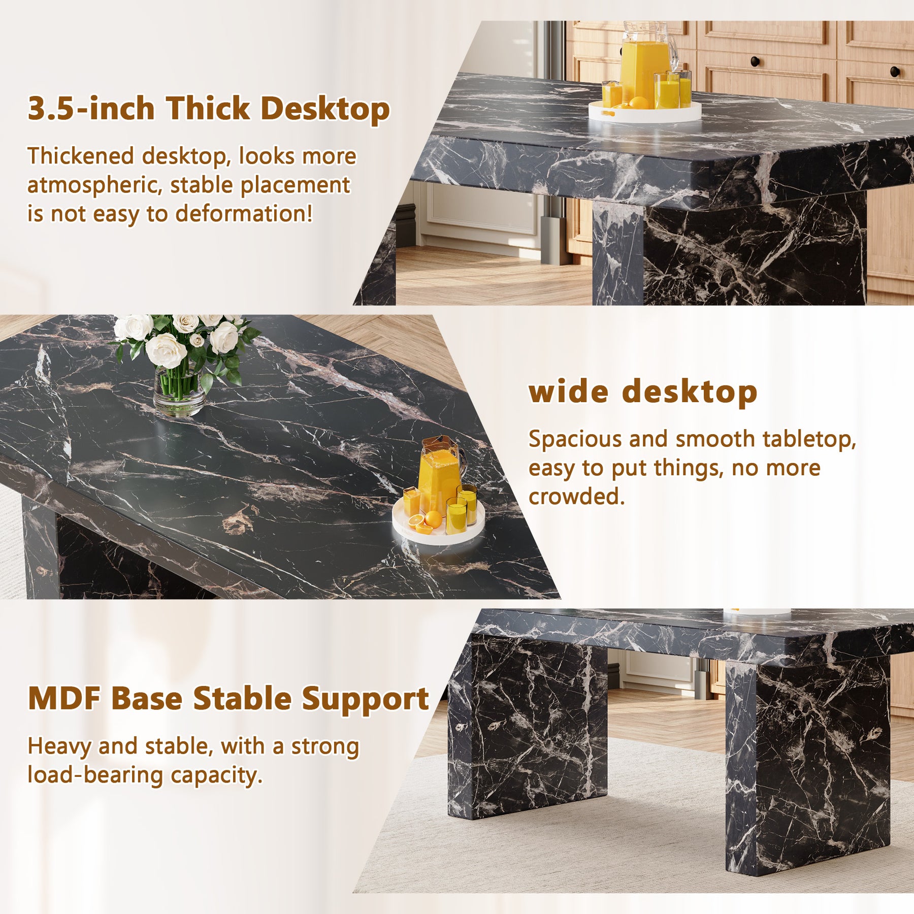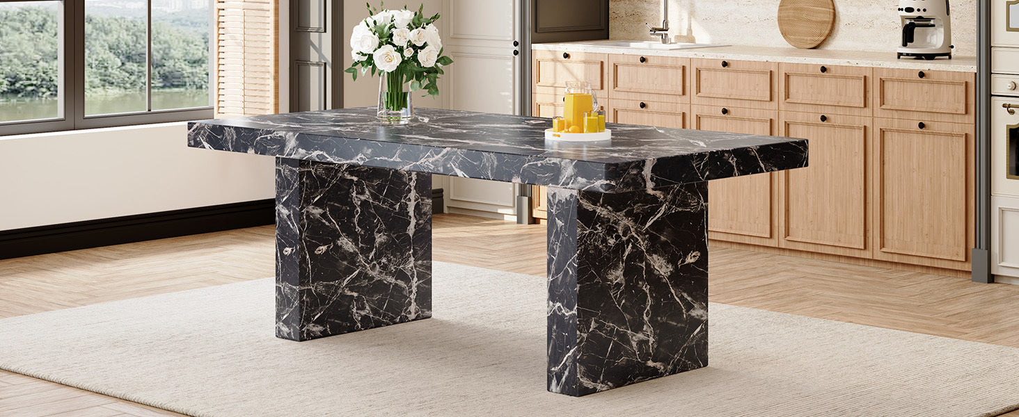 Black Marble Pattern Dining Table with 3.5" Thick Top – Understated Luxury for Your Home