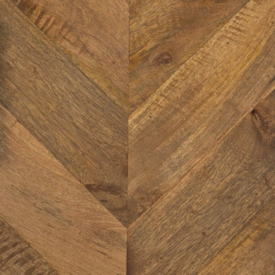 Storage options abound with this accent cabinet featuring 4 chevron pattern doors accented by long dark gray finished metal door pulls. Store dinnerware, cookbooks and many other options within the sideboard which features 2 fixed shelves. The light brown finish will complement virtually any room decor.