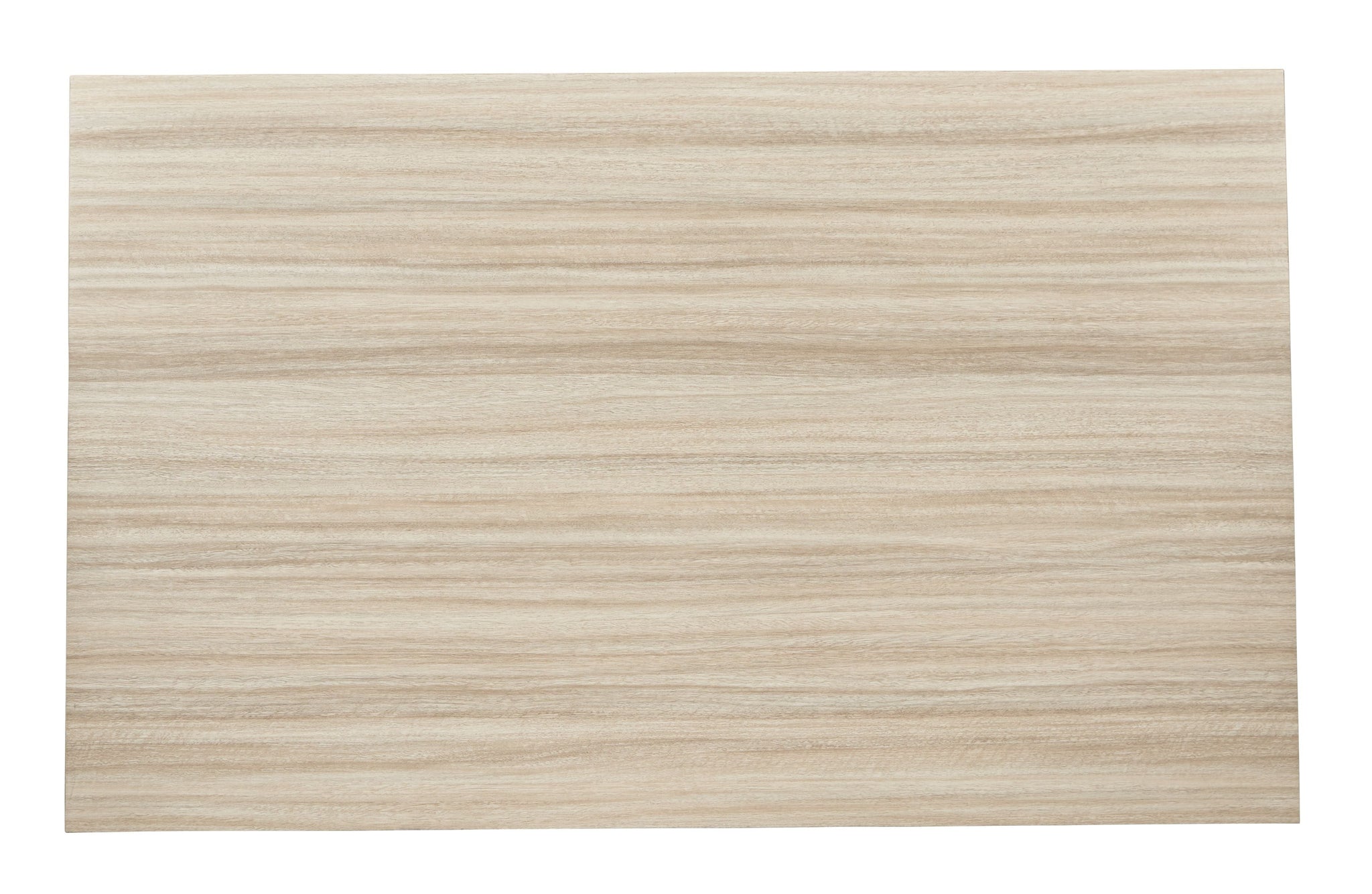 • Melamine top with replicated exotic wood grain in light tan, natural wood coloration
