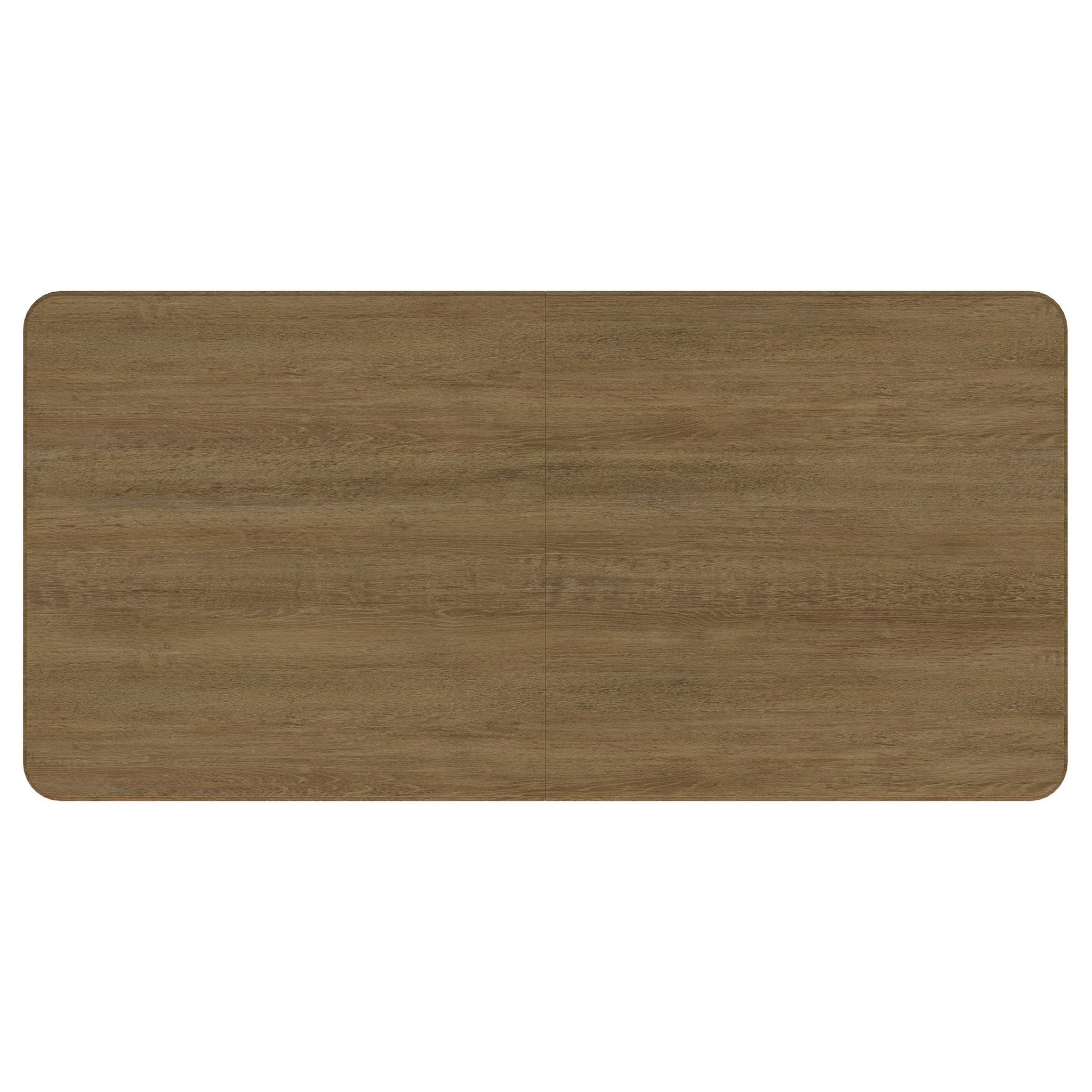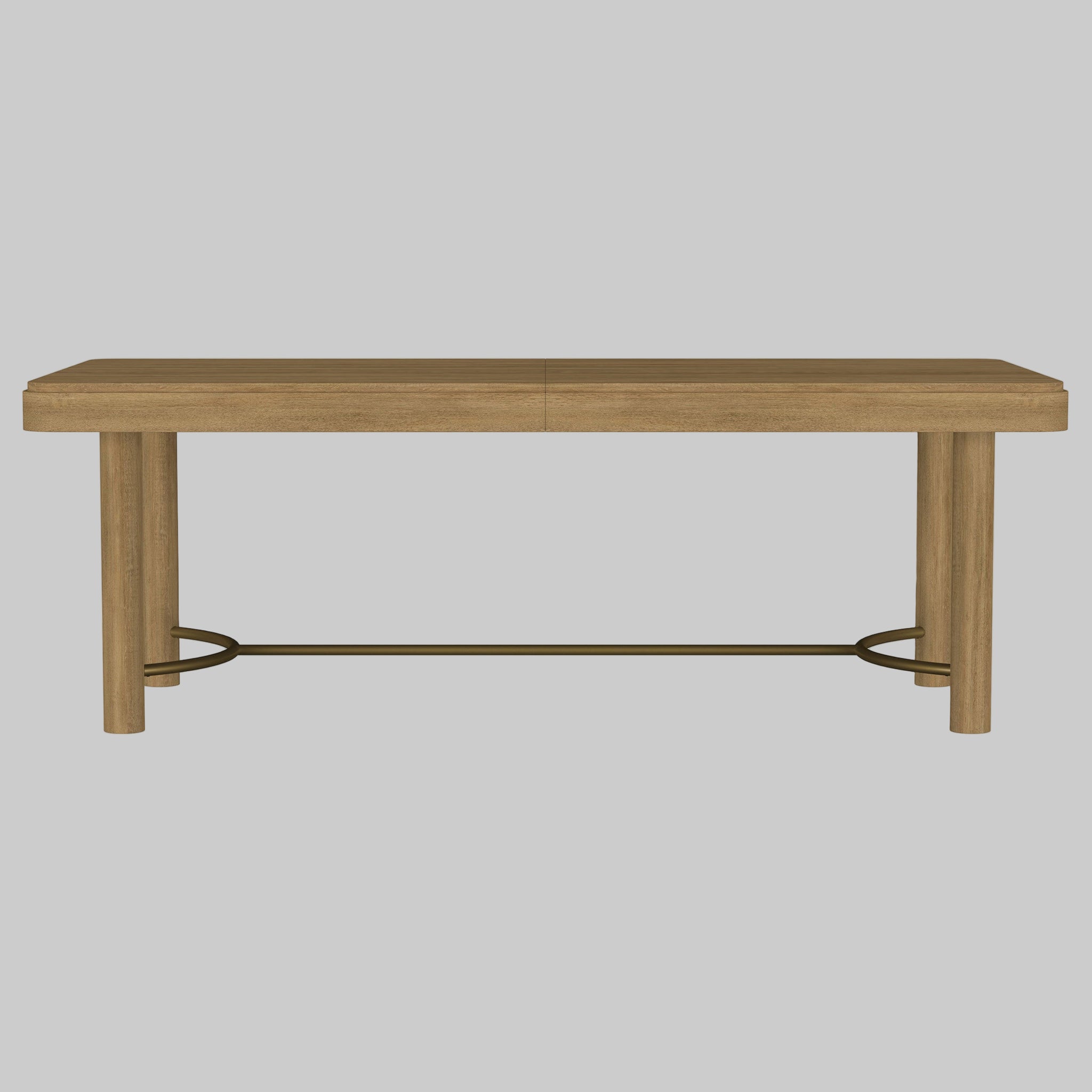 Rounded corners and a sand wash finish give this extension dining table a soft, modern profile that suits open, airy rooms. An antique brass stretcher bar adds strength and contrast, while the removable leaf makes weeknight dinners and holiday gatherings equally seamless.