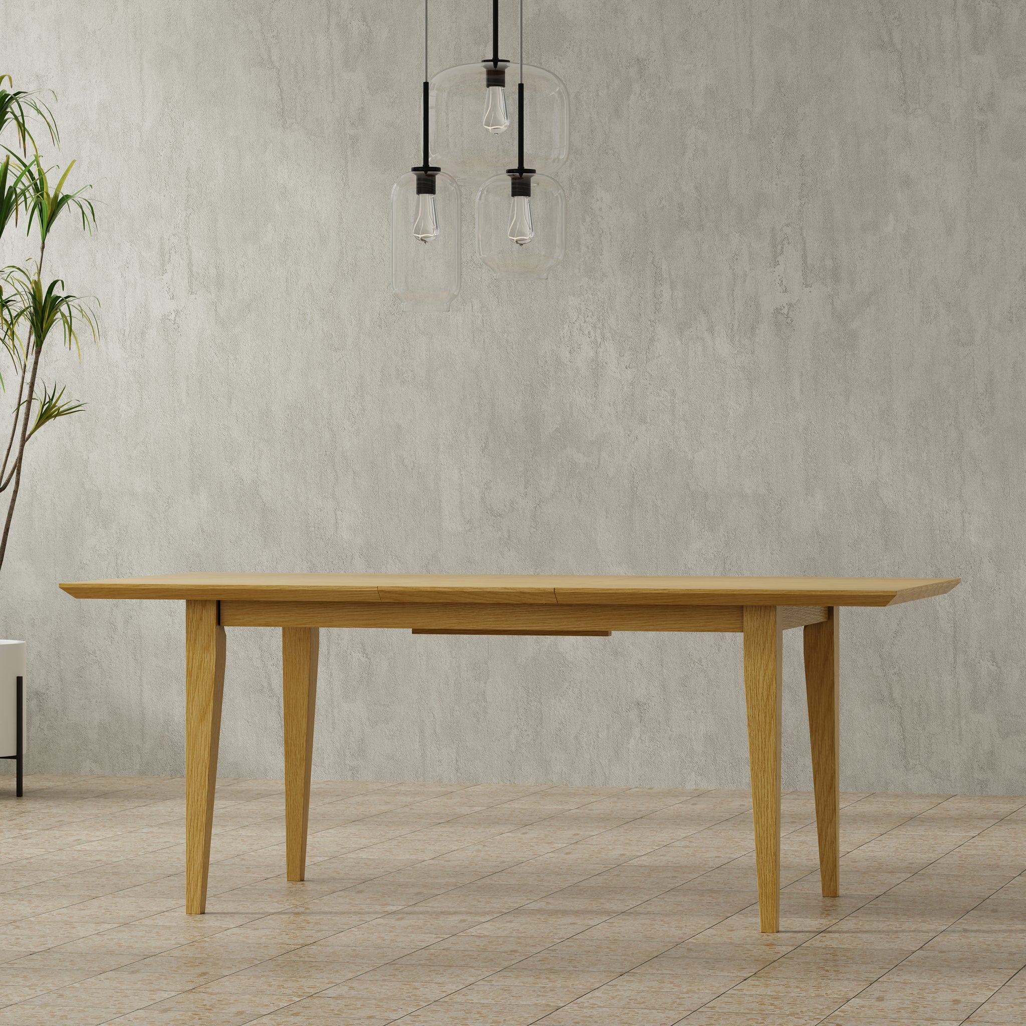 The thick rectangular oak veneer tabletop is crafted with care over a strong engineered wood core, ensuring durability and resistance to seasonal changes. Supported by solid oak wood legs with a refined tapered square design, this solid oak dining table blends contemporary style with lasting strength.