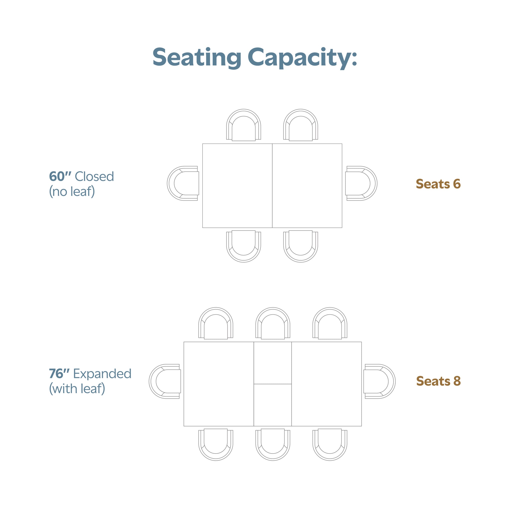 • Expandable Design – Built-in butterfly leaf extends table from 60" to 76" to seat 6–8 people.