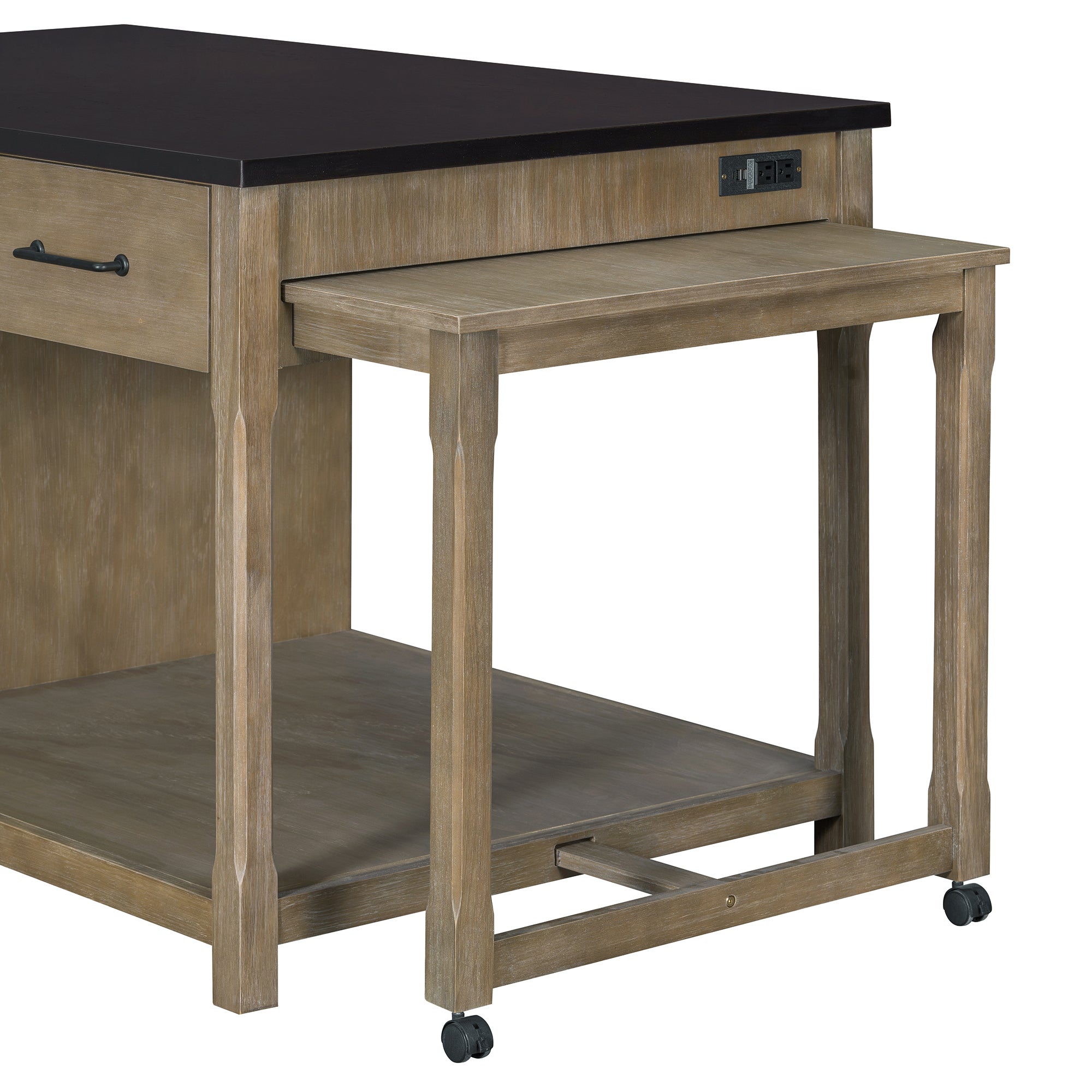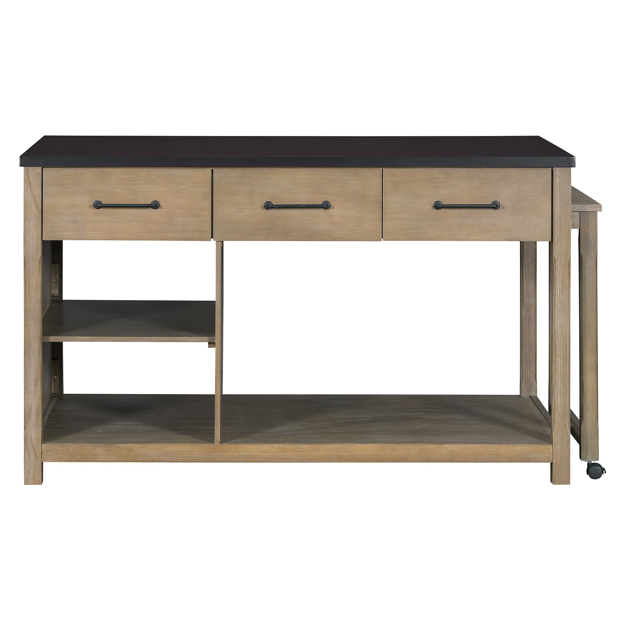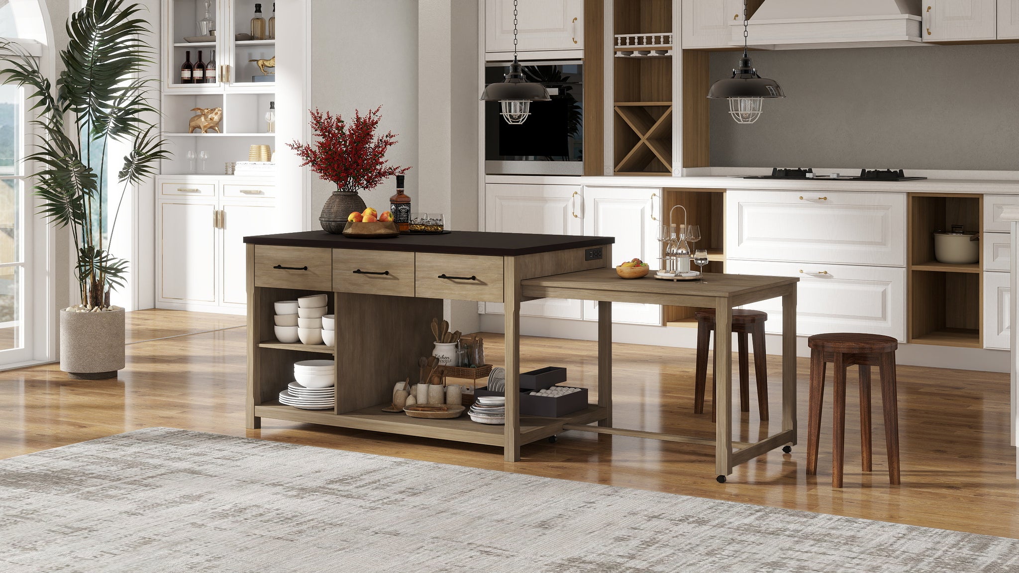 - Expandable Work Surface: The island comes with a hidden countertop extension that can be pulled out on wheels to create extra space and pushed back in to save room. The pull-out extension provides extra counter space for meal prep, entertaining, or even working from home. When not in use, it tucks away neatly, saving space. This feature adds flexibility, making the island ideal for multitasking in a busy kitchen.