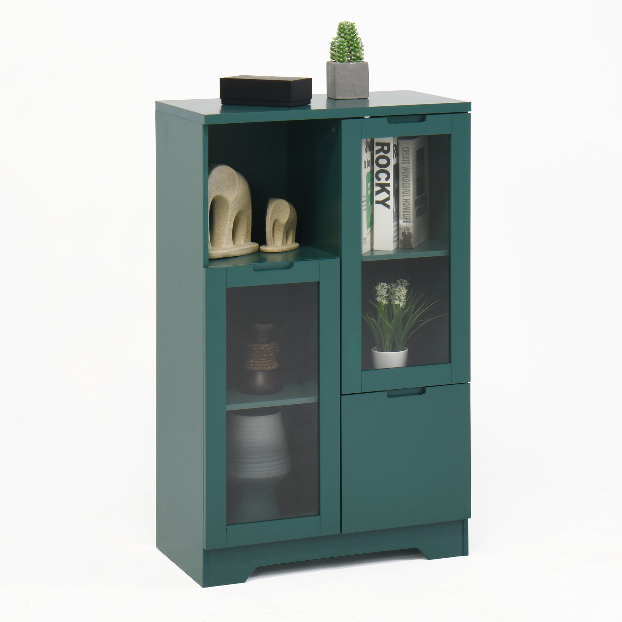 Modern MDF Painted Cabinet with Glass Doors and Drawer, Green, Bedroom Living Room Storage