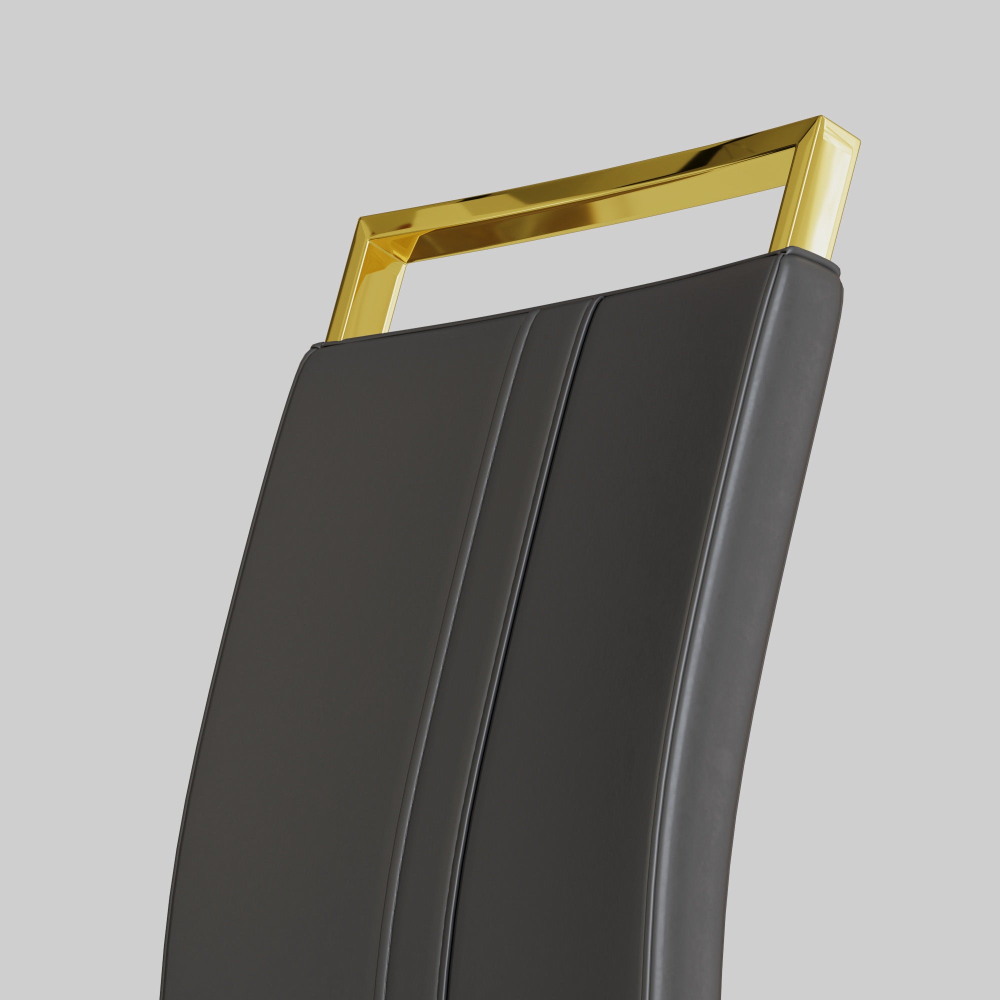 Modern Dark Grey Faux Leather Dining Chair with Sturdy Gold Legs (Set of 4)