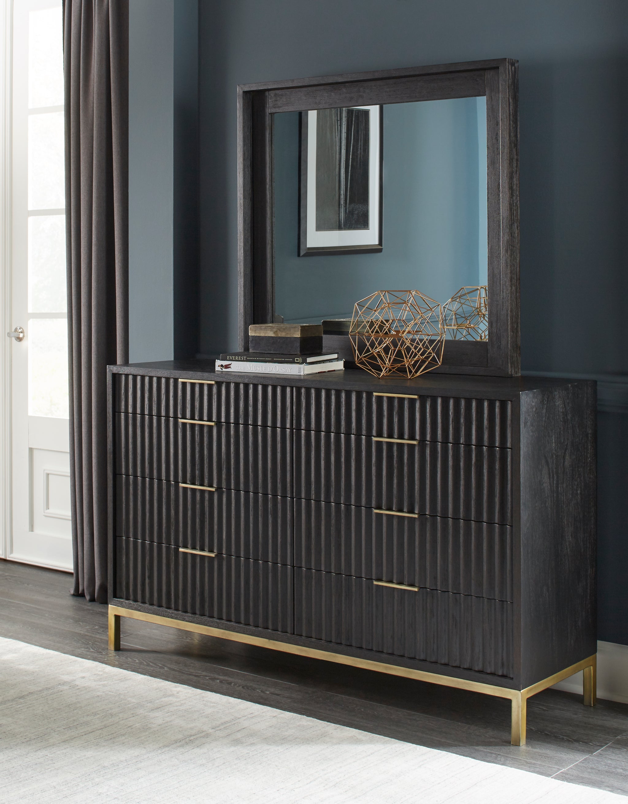 Modus Furniture 8Zu582A Kentifield Solid Wood Eight Drawer Dresser In Black Drifted Oak 2024