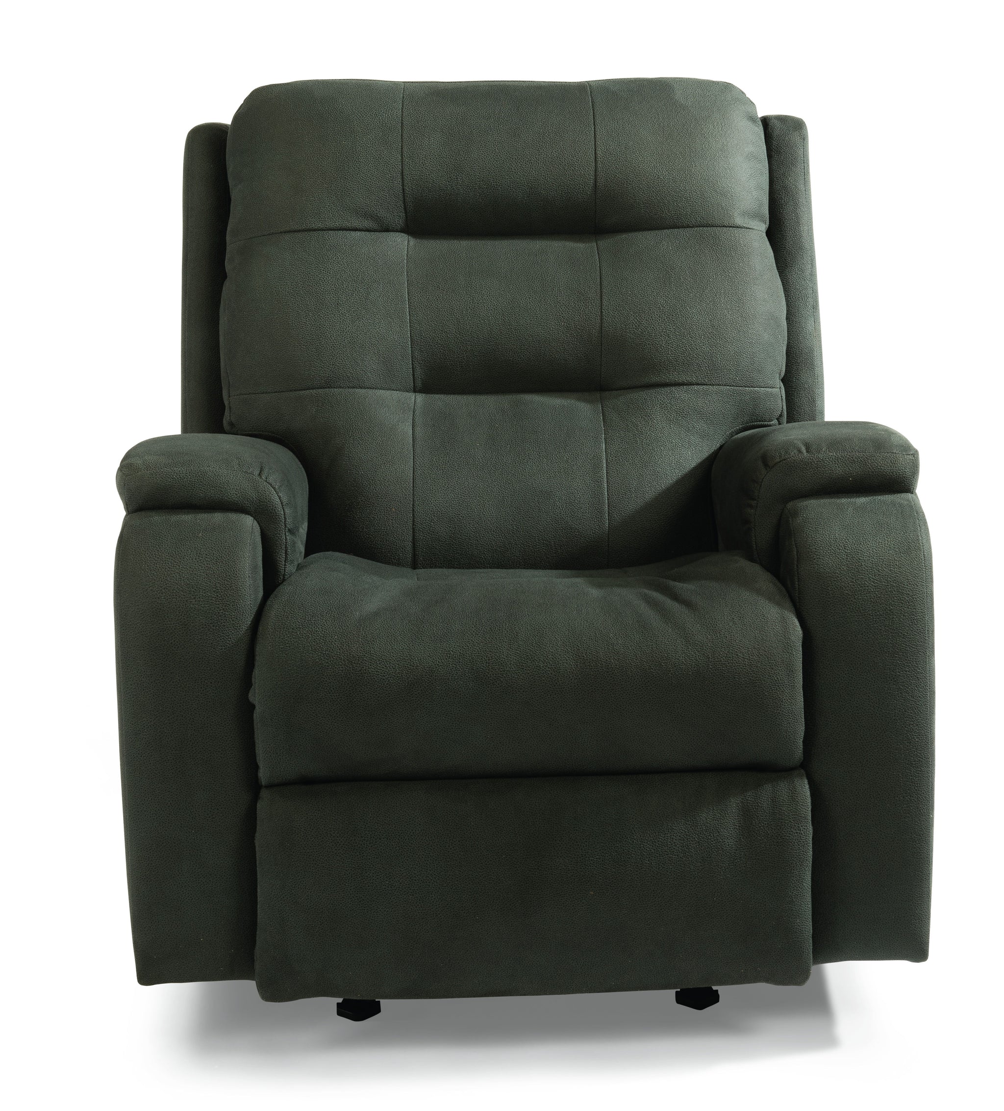Supportive Style. Get the ultimate in back support and seamless motion with the Arlo Rocking Recliner with Power Headrest and Lumbar. When in the sitting position, this recliner features a comforting back and forth motion that’s great for lulling babies or soothing yourself to sleep. When you are ready to lay back and put your feet up, use the power control in the arm to independently adjust the recline, headrest and lumbar to achieve the perfect position. Other ergonomic features include pull-tufted, triple-divide back cushions that have a distinctive aesthetic and take the pressure off your head, neck and lower back. Rounded pad-over track arms cradle your forearms, while a contoured seat with chaise pad gives you a comfy place to kick back and unwind. Never worry about durability, thanks to our patented DualFlex Spring System™ that combines firmness with flexibility. Choose from over 250 fabric options to tailor a look that’s all your own.