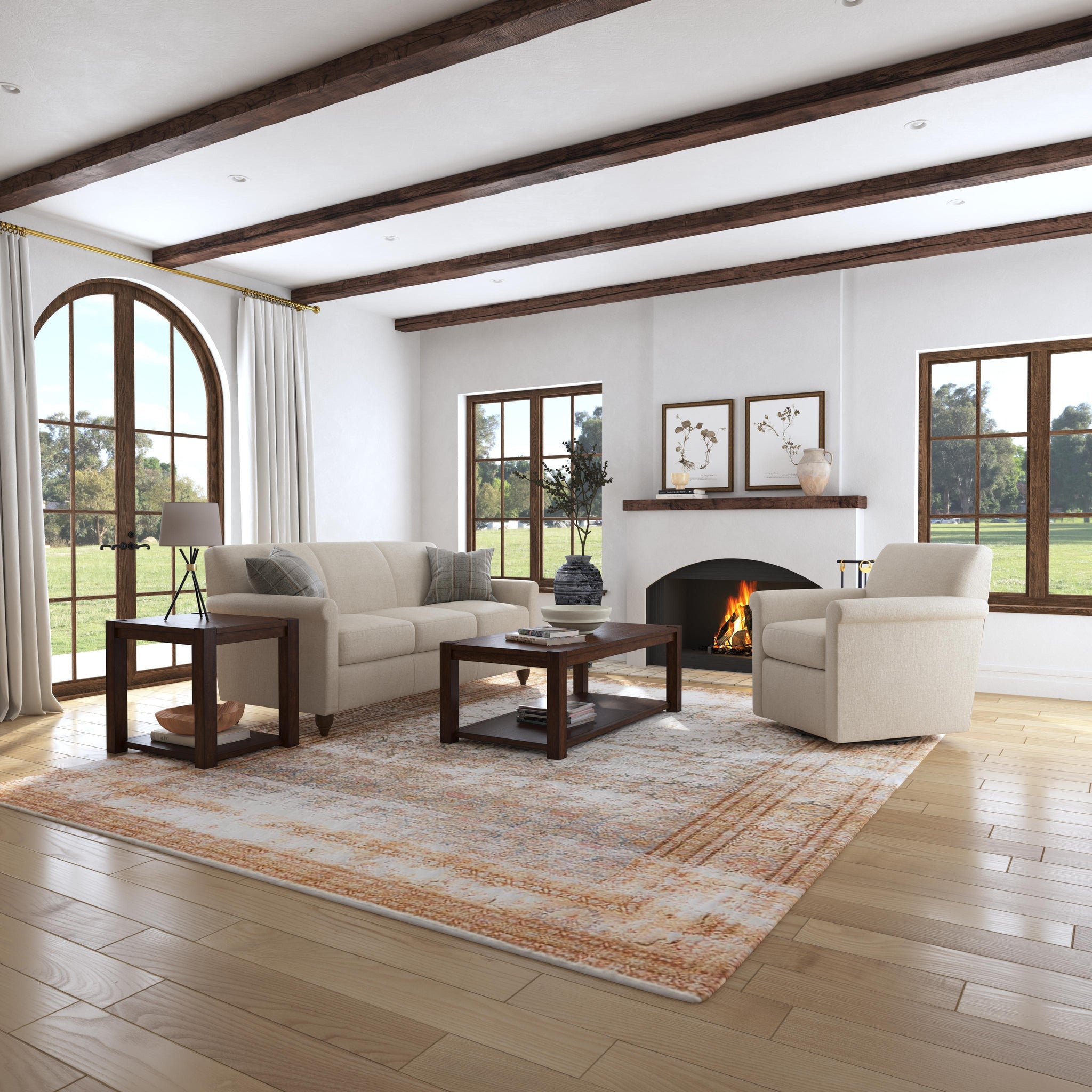 Whimsical elegance. The perfect elegant piece to accentuate your home, the picturesque petite roll arms of the Stella sofa invite you in. Take a seat atop removable and reversible cushions that are supported by our patented Blue Steel Spring system – backed by our lifetime guarantee. Handcrafted with a durable frame and upholstered with careful detail, Stella is designed to last. The tight back and turned wood legs give this quaint sofa a modern flair. And with two accent pillows in your choice of fabric, elevate your home with the chic style of Stella.