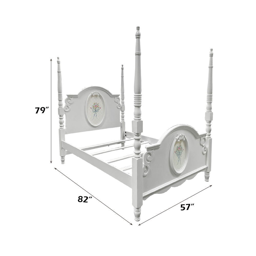 • Box Spring Required, Poster Bed: Arched Headboard/Footboard, Oval Rope Molding with floral motif decals, Flora Collection: Poster Panel Beds, Optional Trundle sold Separately