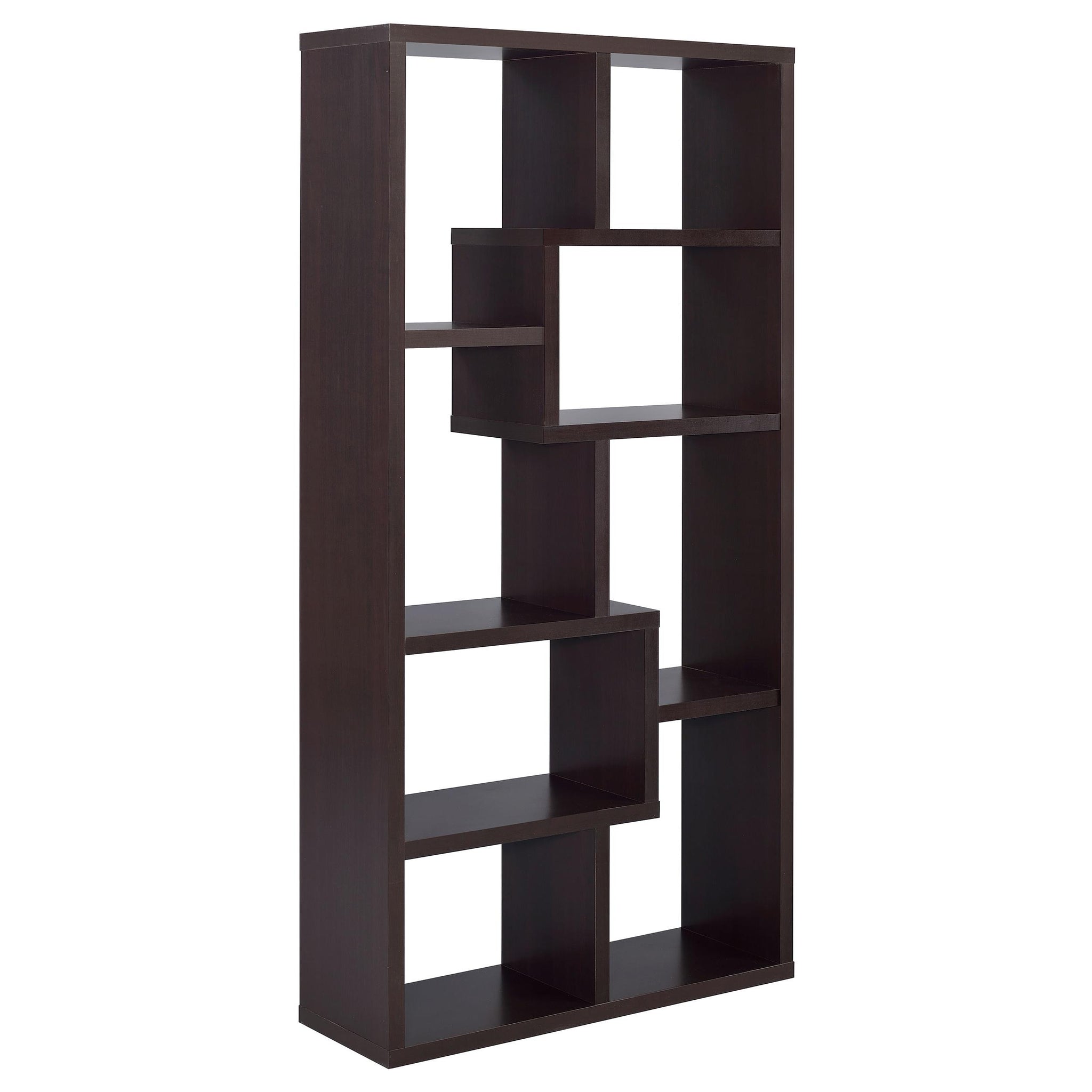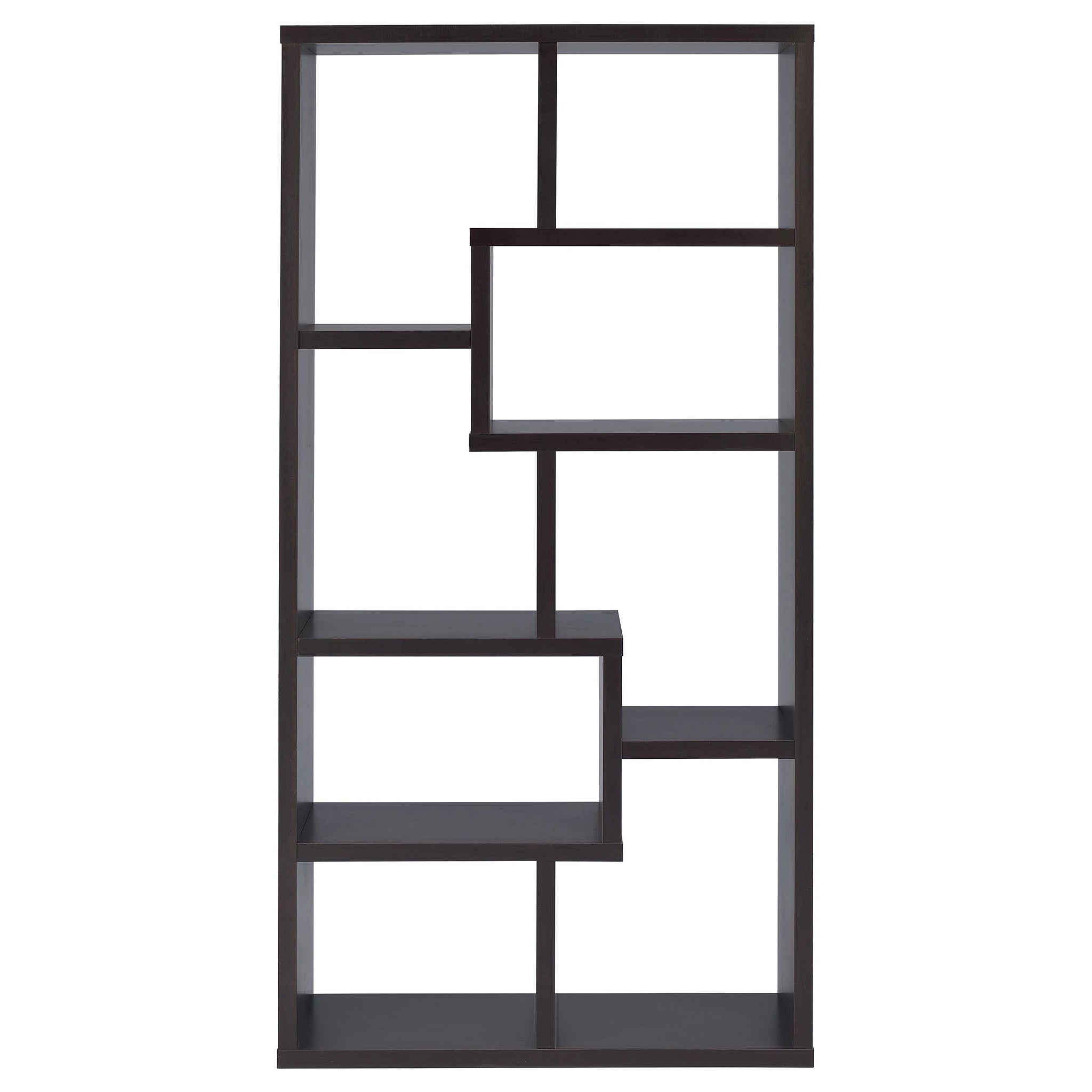 Stately, sturdy, and strong, this bookcase is an excellent choice for a library or living room. Featuring seven convenient shelves, it offers lots of space for storage. The shelves are arranged in a bold, geometric design, giving it a modern appearance. Its available in four stunning colors to accentuate any decor. Constructed from high-quality materials, this bookcase is a safe spot to store your most precious belongings.