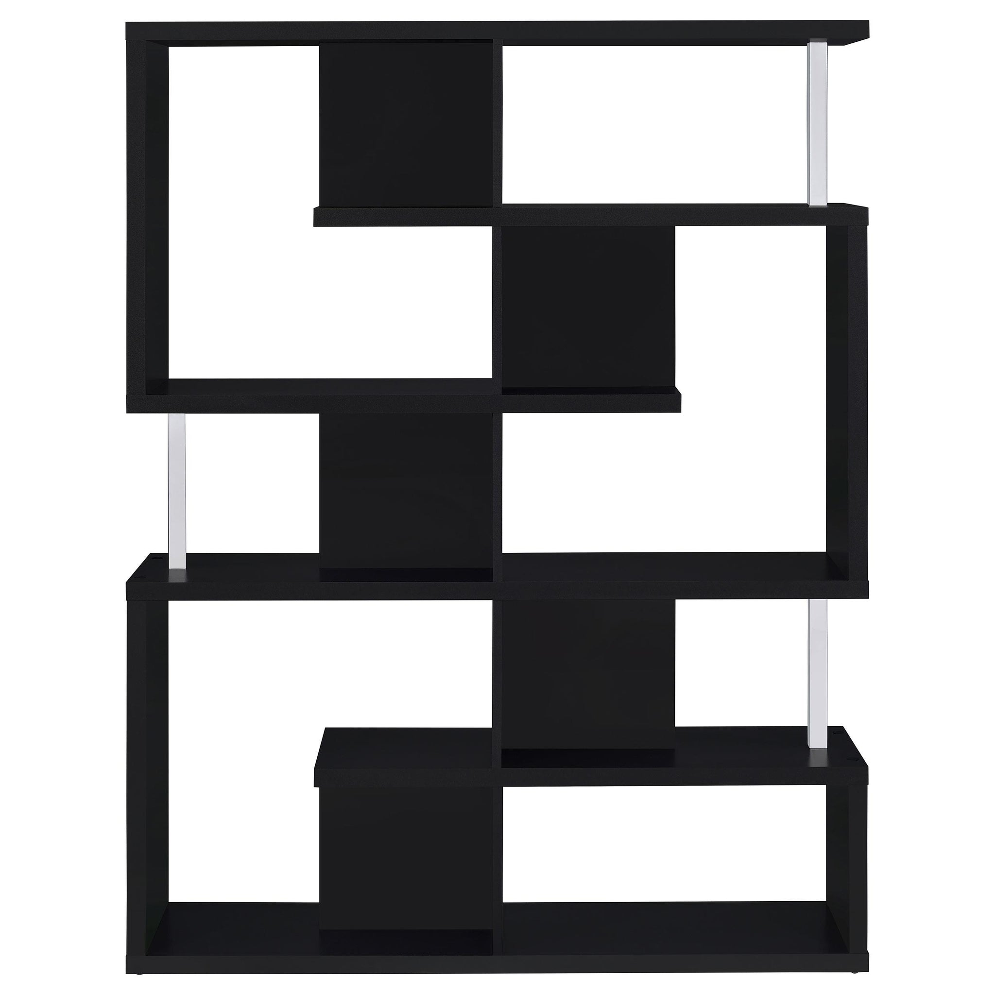 Accentuate an office or living room with style and pizzazz. This double bookcase boasts five tiers of multi-level shelves, providing plenty of space for storage. Choose a black finish for a more subdued look, or white for a kick of contemporary cool. Chrome details liven up its artful design. With its modern silhouette, this bold bookcase is sure to be a conversation piece.