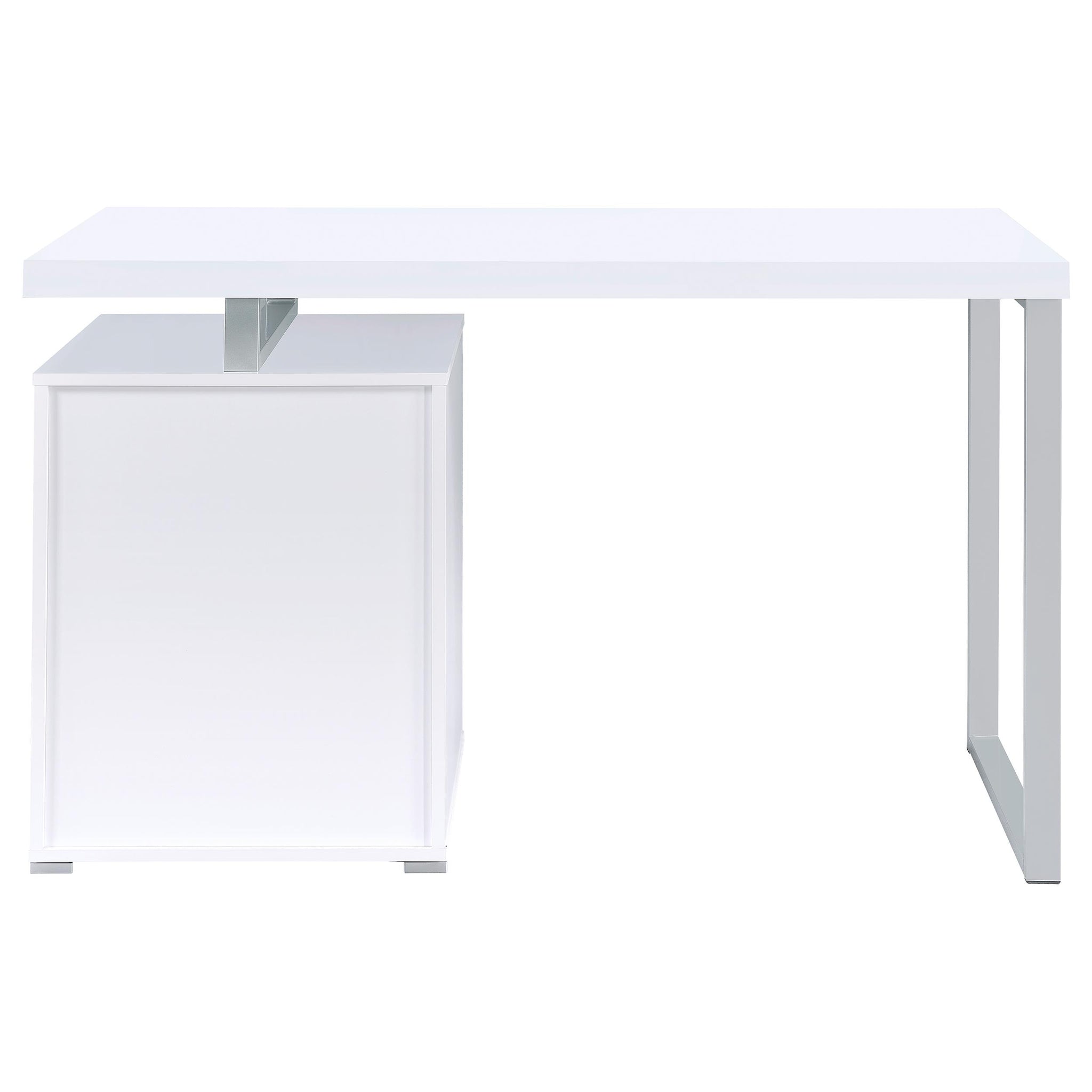 Update your home office with contemporary glamour. This office desk boasts a chic, trendy silhouette. A sturdy metal frame with a cool silver finish elegantly complements its sleek design. Three convenient drawers include a large file cabinet with space for both legal and letter size documents. Available in finishes of white, cappuccino, or weathered grey, theres an option to blend with the decor of any home.