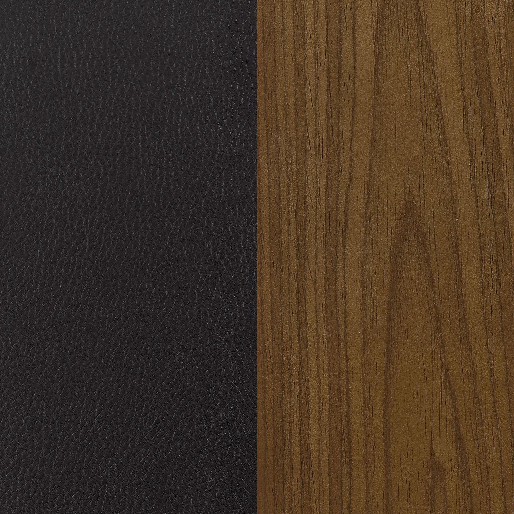 A low profile offers easy elegance and comfortable seating. Reflecting a hint of retro design, this office chair is functional and fashionable. Enjoy supremely comfortable seating on a molded seat with generous upholstery and a curved base. A gently curved seat back is generously sized and makes a great venue for resting. Easy-care black leatherette with walnut and chrome accents offers an exceptional mix of materials and an enticing palette, and adjustable seat heights join caster wheels to aid in customizing positions.