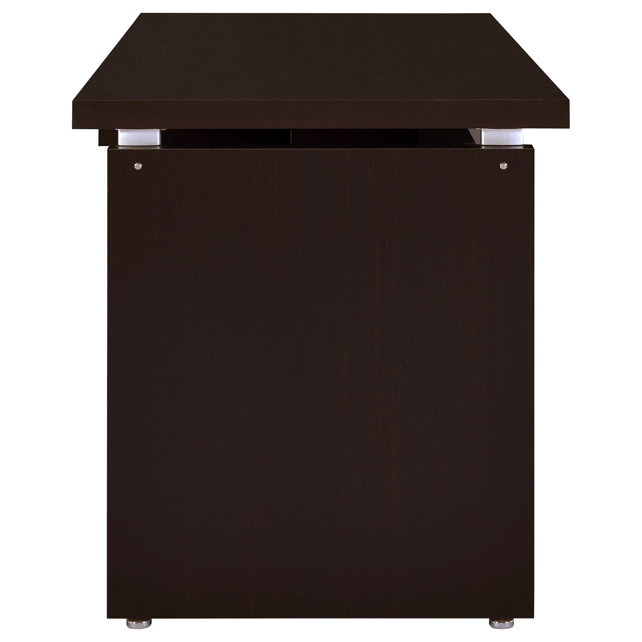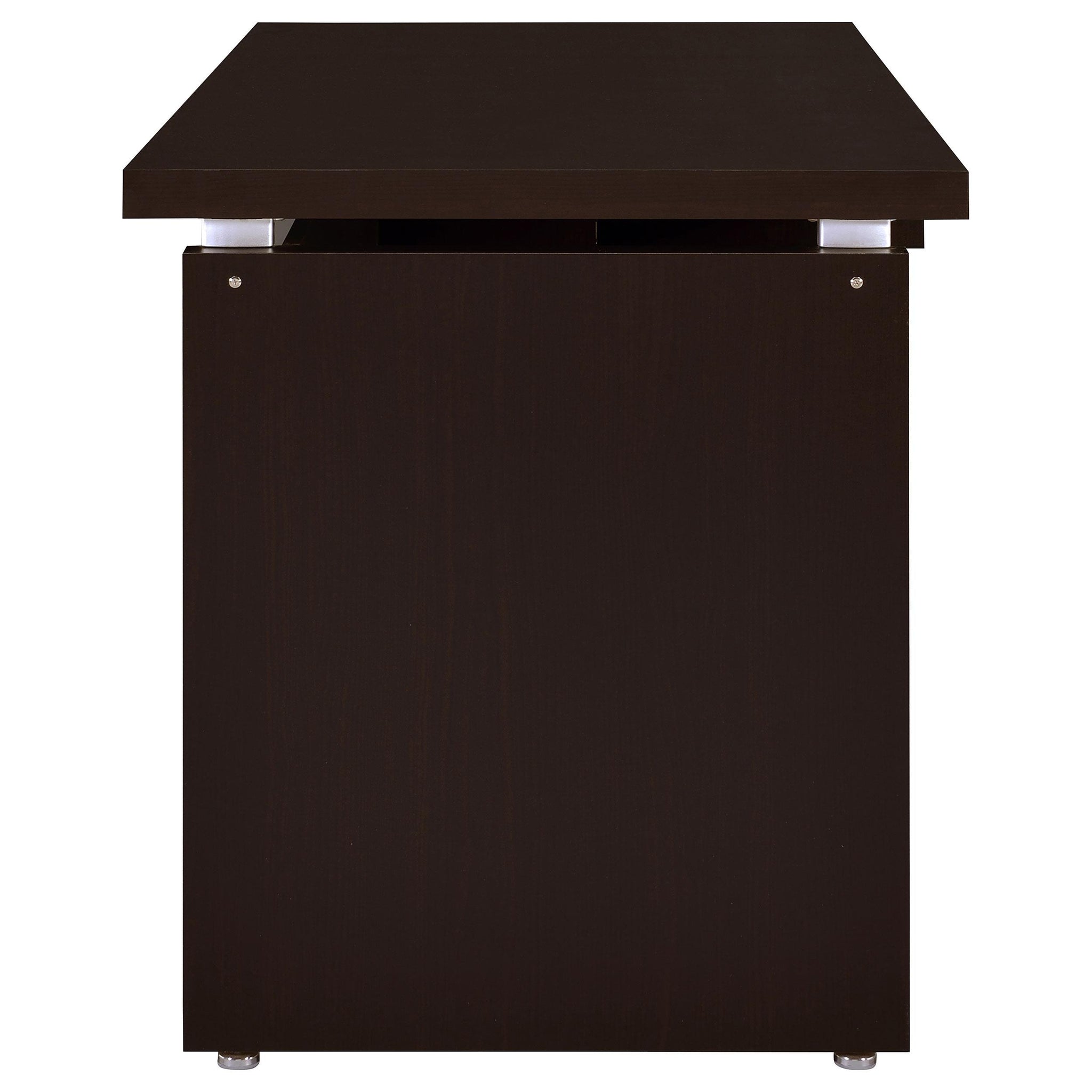 Built from engineered wood with a wood-look laminate veneer in a cappuccino finish