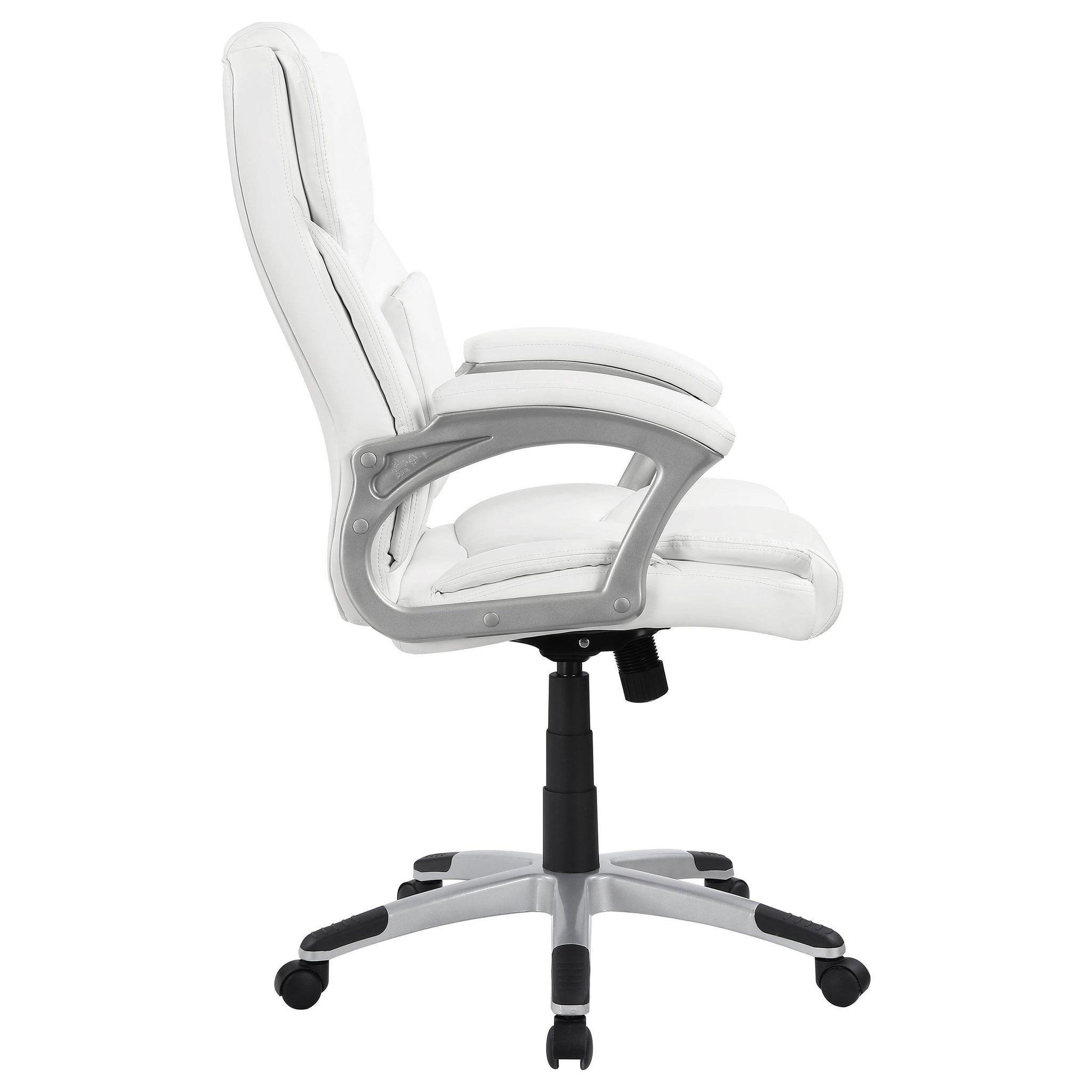 Try something different in an office space. At home or work, this office chair makes sitting a comfy experience and mobility a breeze. Fresh, bright white leatherette upholstery wakes up an office. Generously padded sections ensure excellent bodily support. Armrests and adjustable height settings make it easy to find the perfect working position.