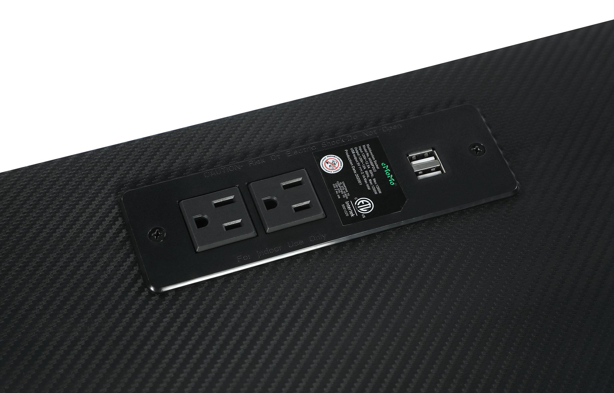 • Features a water and stain-resistant carbon fiber textured PVC desk top