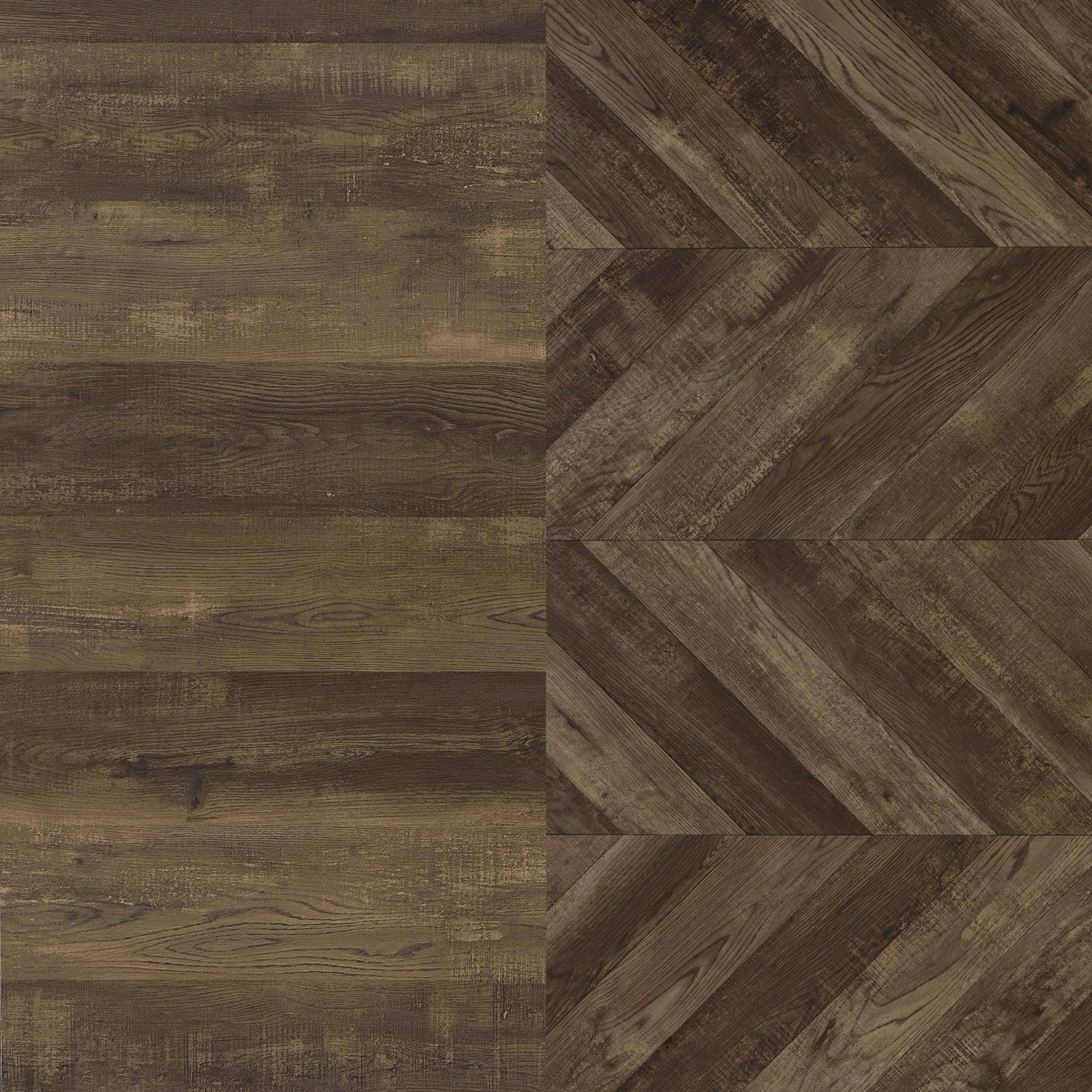 • Rustic oak finish with an eye-catching herringbone pattern on door fronts