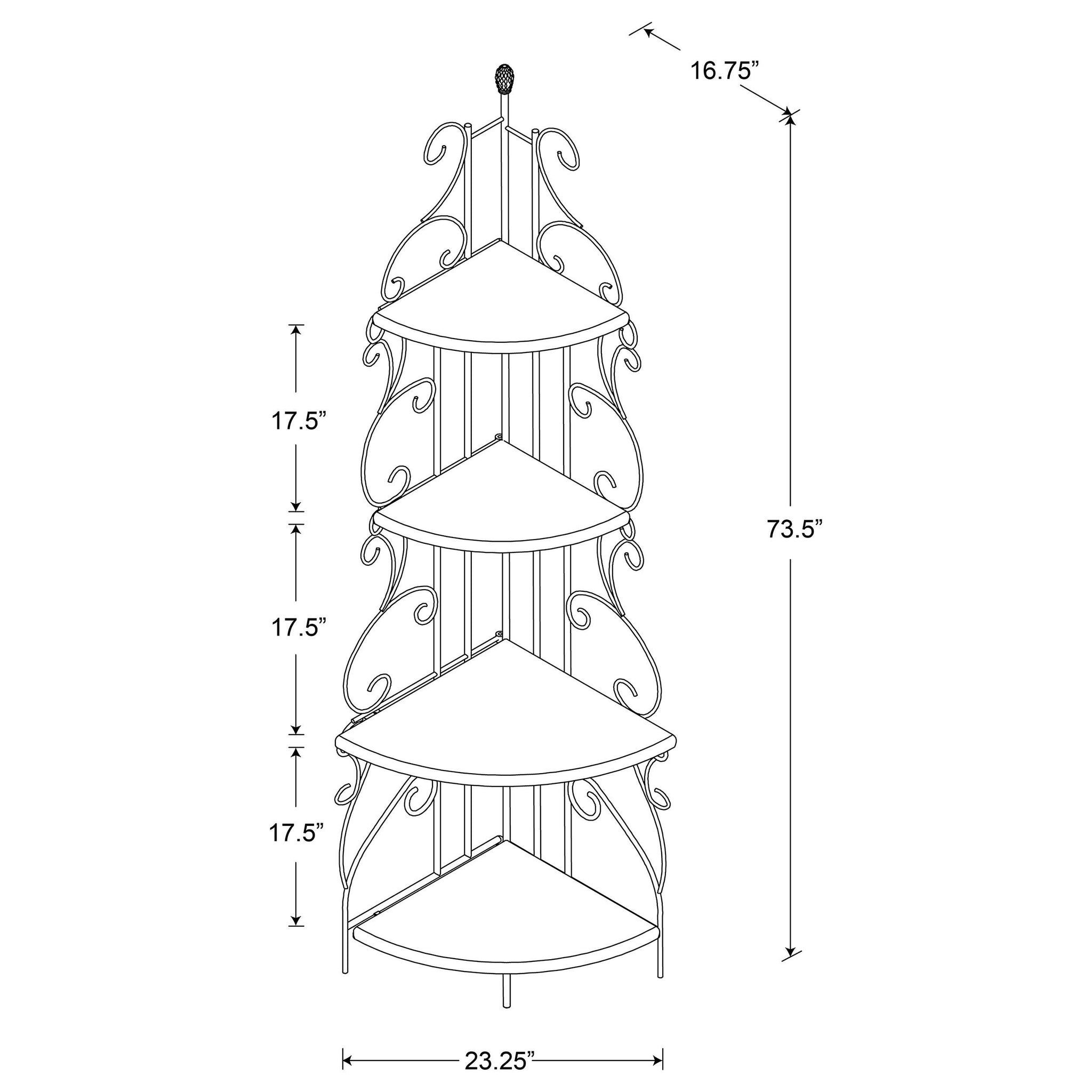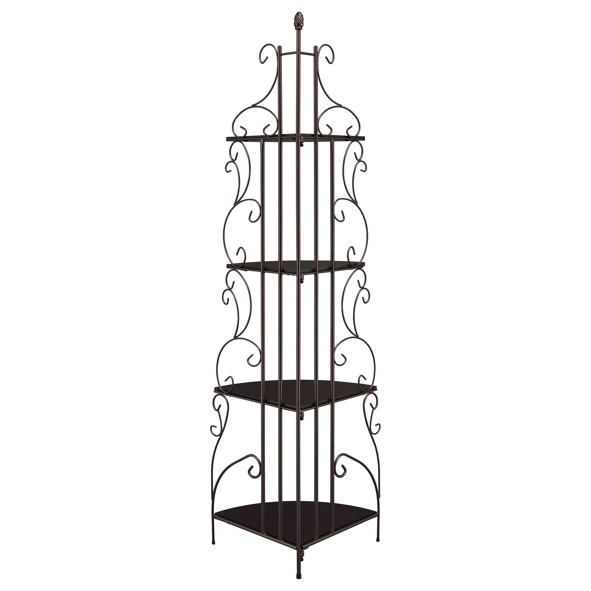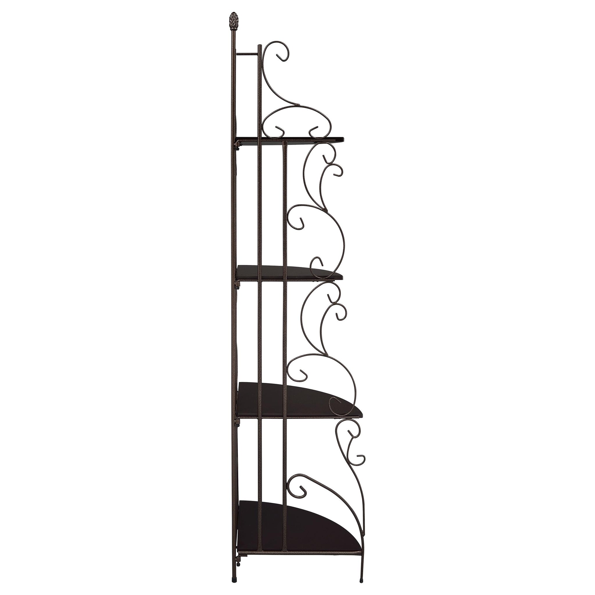 Ratchet up the romance in a traditional space. Designed to bolster the traditional look of a central living space, this corner bookcase is a great choice. Four graduated tiers create a subtle silhouette and offer plenty of space to display books, decor, and potted plants. Made from steel and wood-like material, it blends an earthy elegance with old fashioned charm. Warm any space with its luscious cappuccino and copper finish.