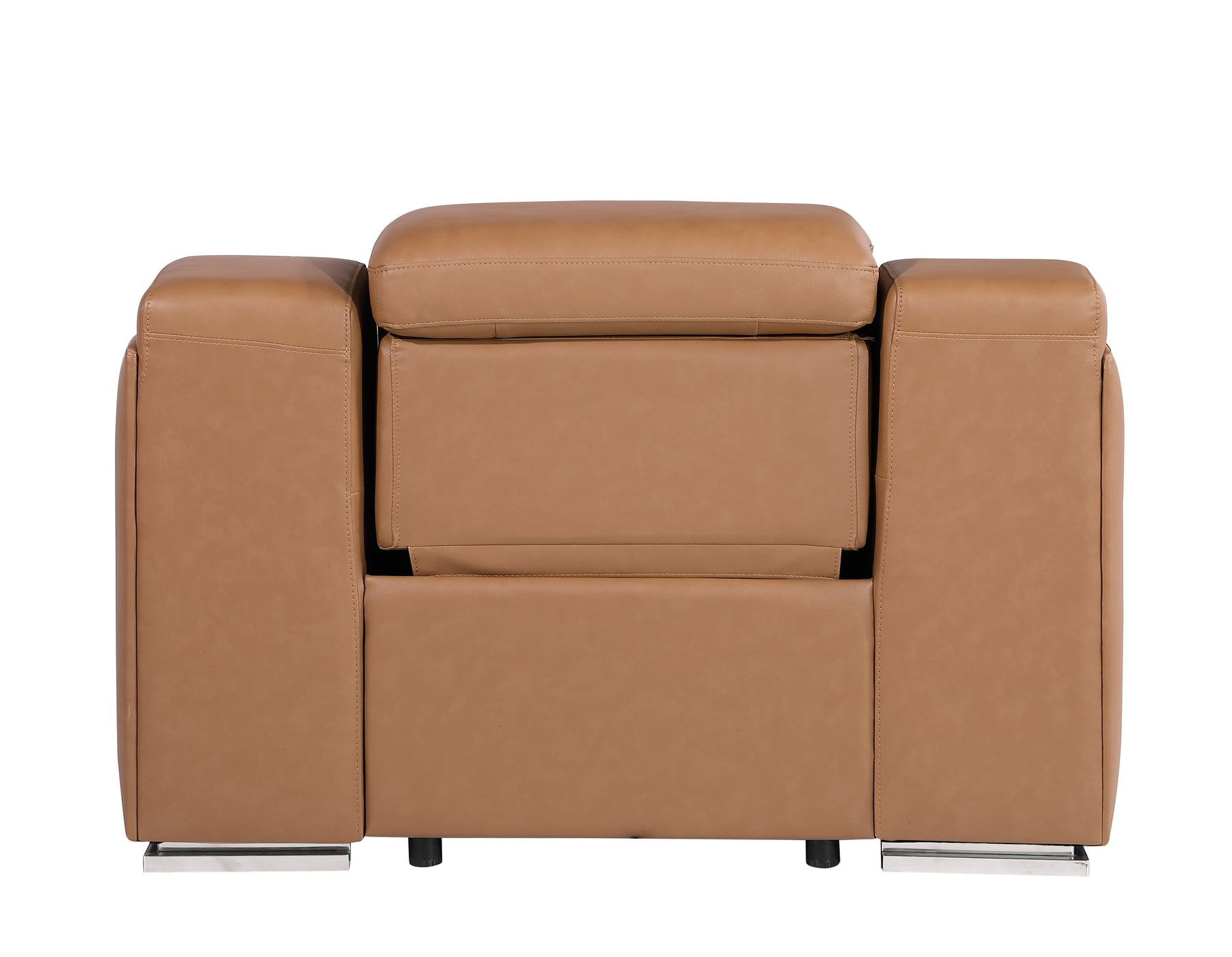 DivanItalia Cognac Italian Leather Power Reclining Chair with Power Headrests