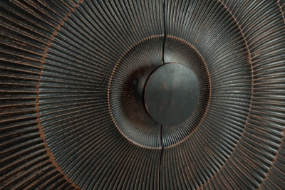 High style is on the rise with this wood accent cabinet. Its stunning doors, graced with a carved sunburst pattern and oversized wood pull, open to reveal two shelves. A distressed black finish adds contemporary flair. Whether this cabinet is accommodating storage needs or hiding clutter, it's truly a showpiece.