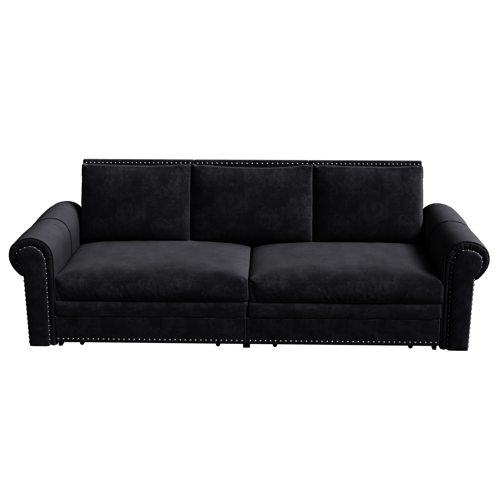 Chesterfield Convertible Sleeper Sofa with Nailhead Trim & Rolled Arm in Black