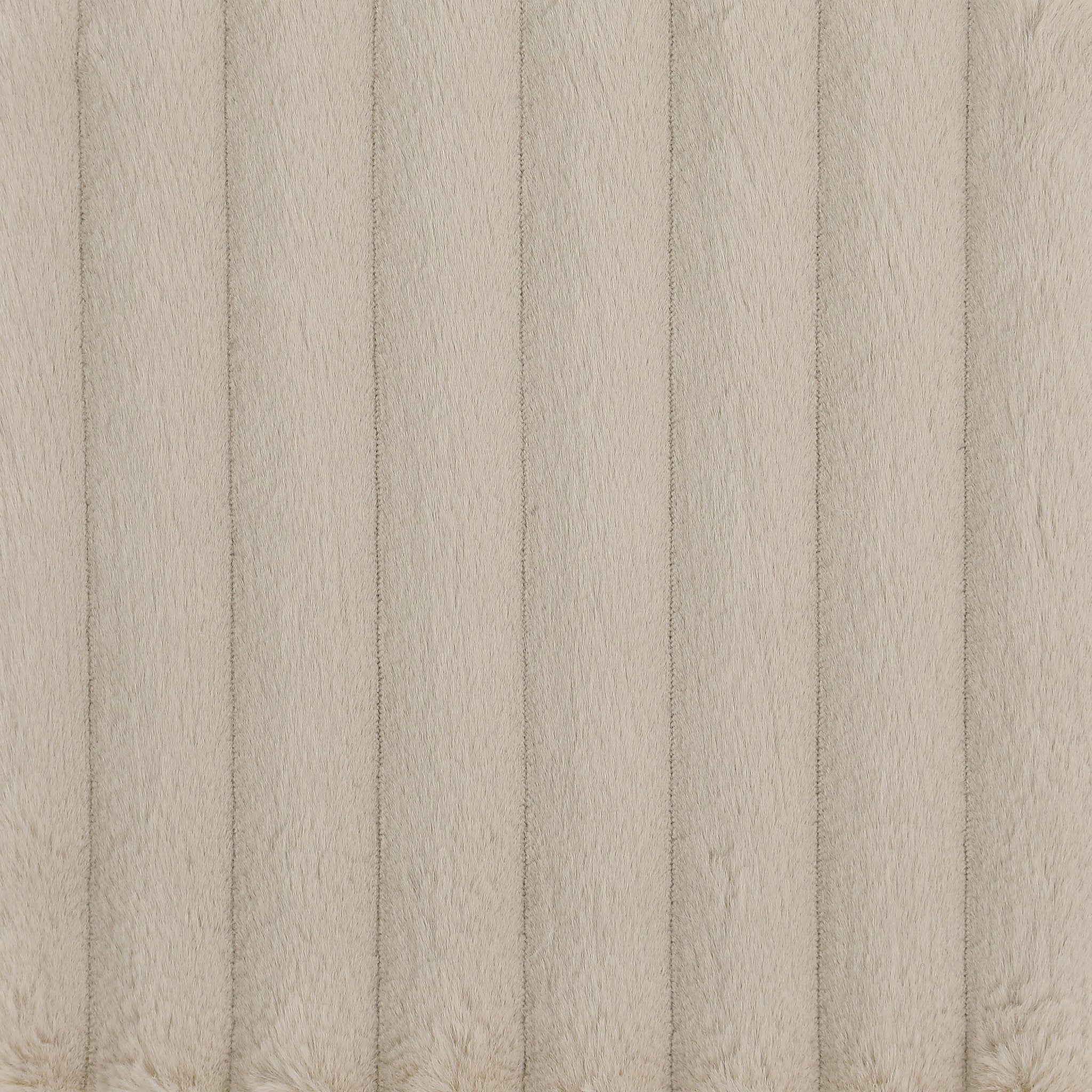 Bring fresh, effervescent energy to your living room with a modern upholstered sofa that shows off your curve appeal. This great piece, in soft beige with wonderful texture, is designed to float in the center of a room as an attractive focal point. Its rounded, kidney-inspired silhouette is framed by extra wide channel details, with plush foam cushioning for excellent comfort. The sofa is complemented by premium filled accent pillows featuring a wide corduroy stripe and plum textured boucle, adding texture and dimensionality. Underneath, stylish tapered black powder coated metal legs are gracefully splayed for a vintage touch, complementing the height they add for an airy finish.