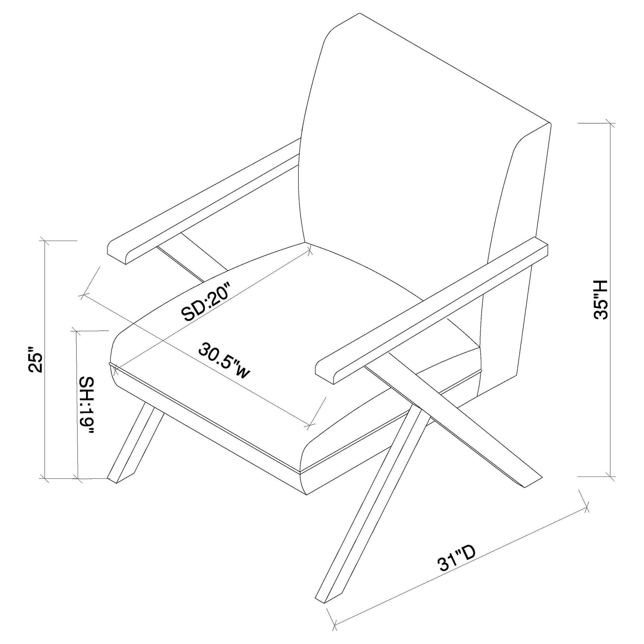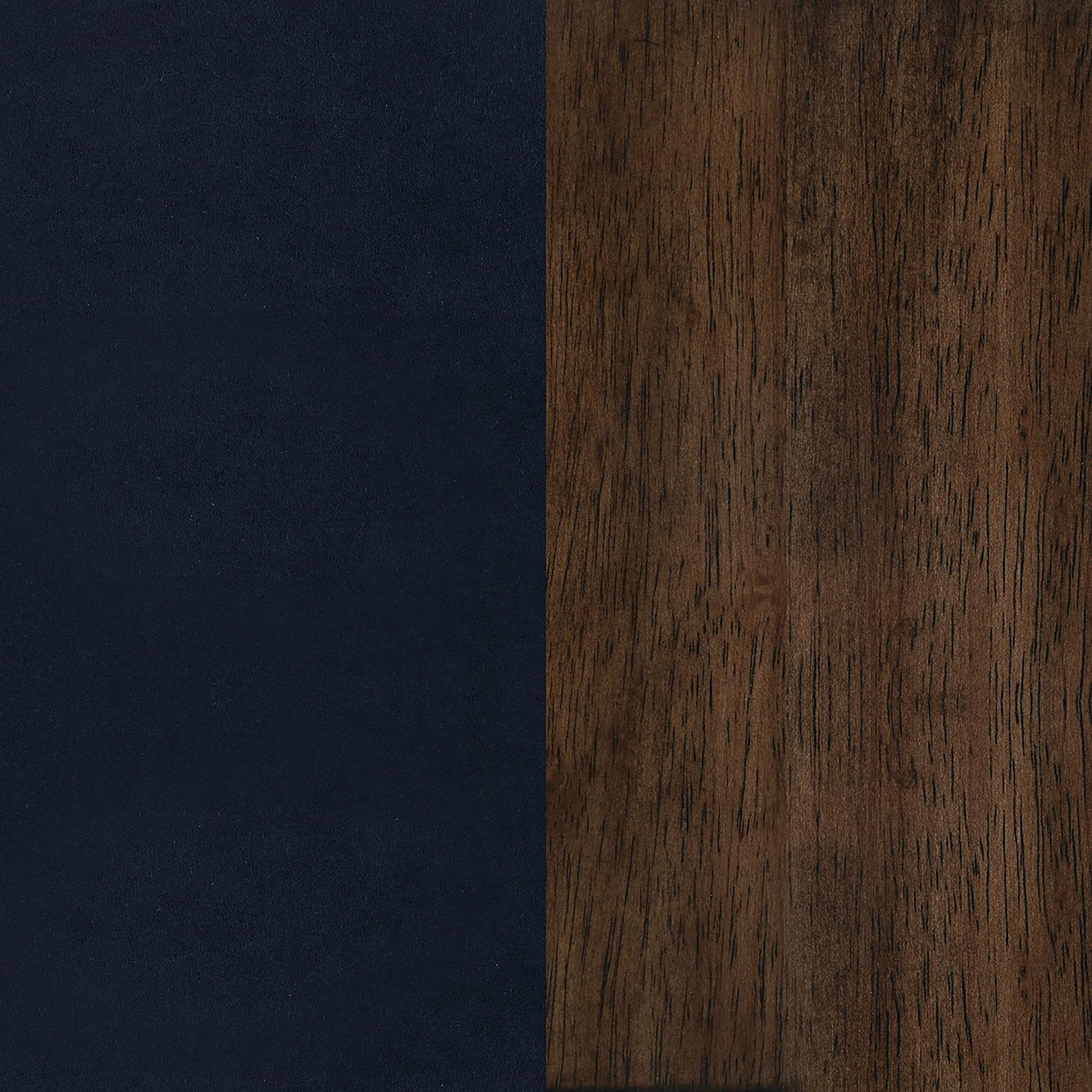 Go bold in both tones and silhouette when you add this fabric accent chair to your home. Chair is upholstered in soft dark blue fabric. Padded seat and back cushions provide hours of comfort. Rich brown armrests and legs offer warmth and support. Its a bold, handsome addition to your living room or den.
