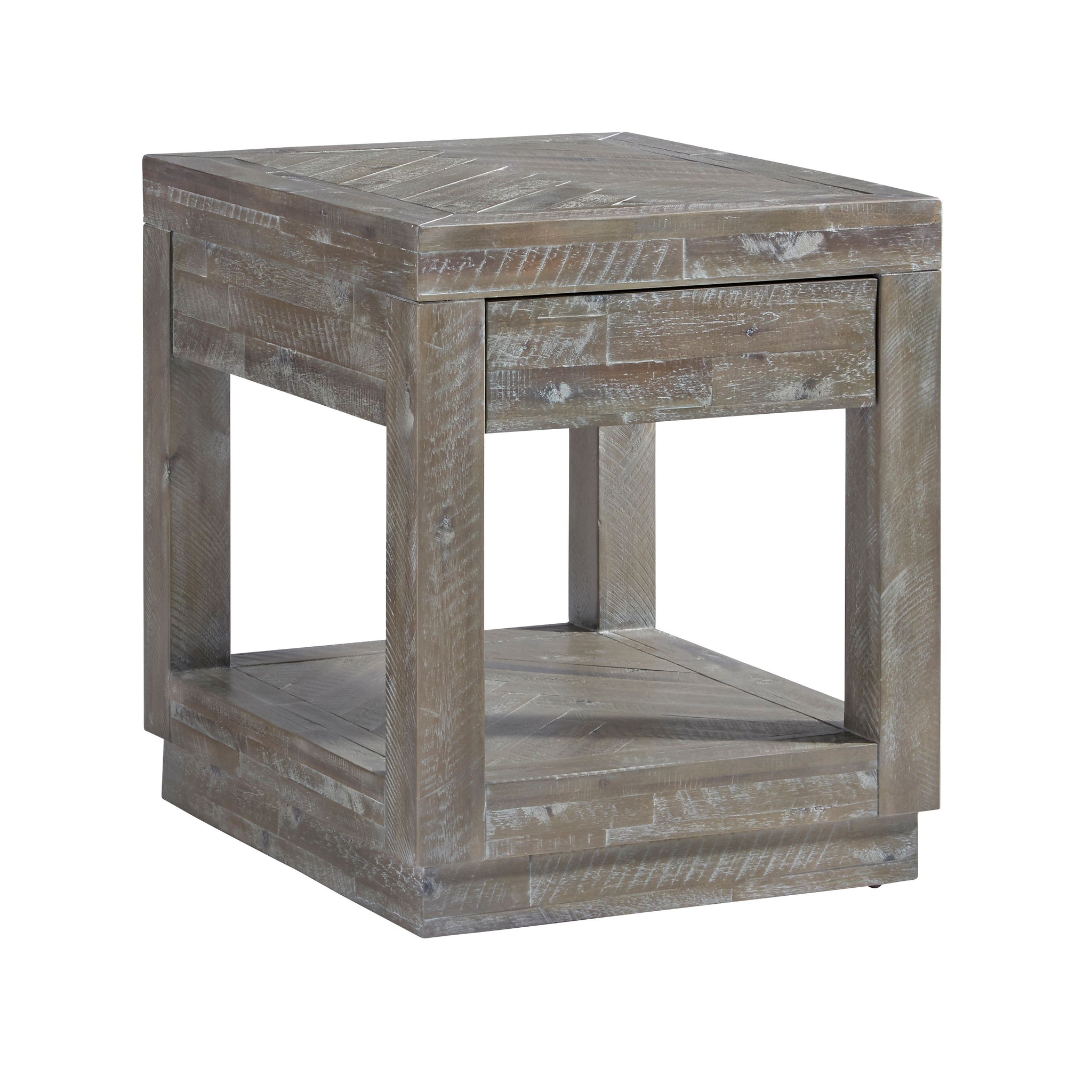 Modus Furniture 5Qs322 Herringbone Solid Wood One Drawer End Table In Rustic Latte