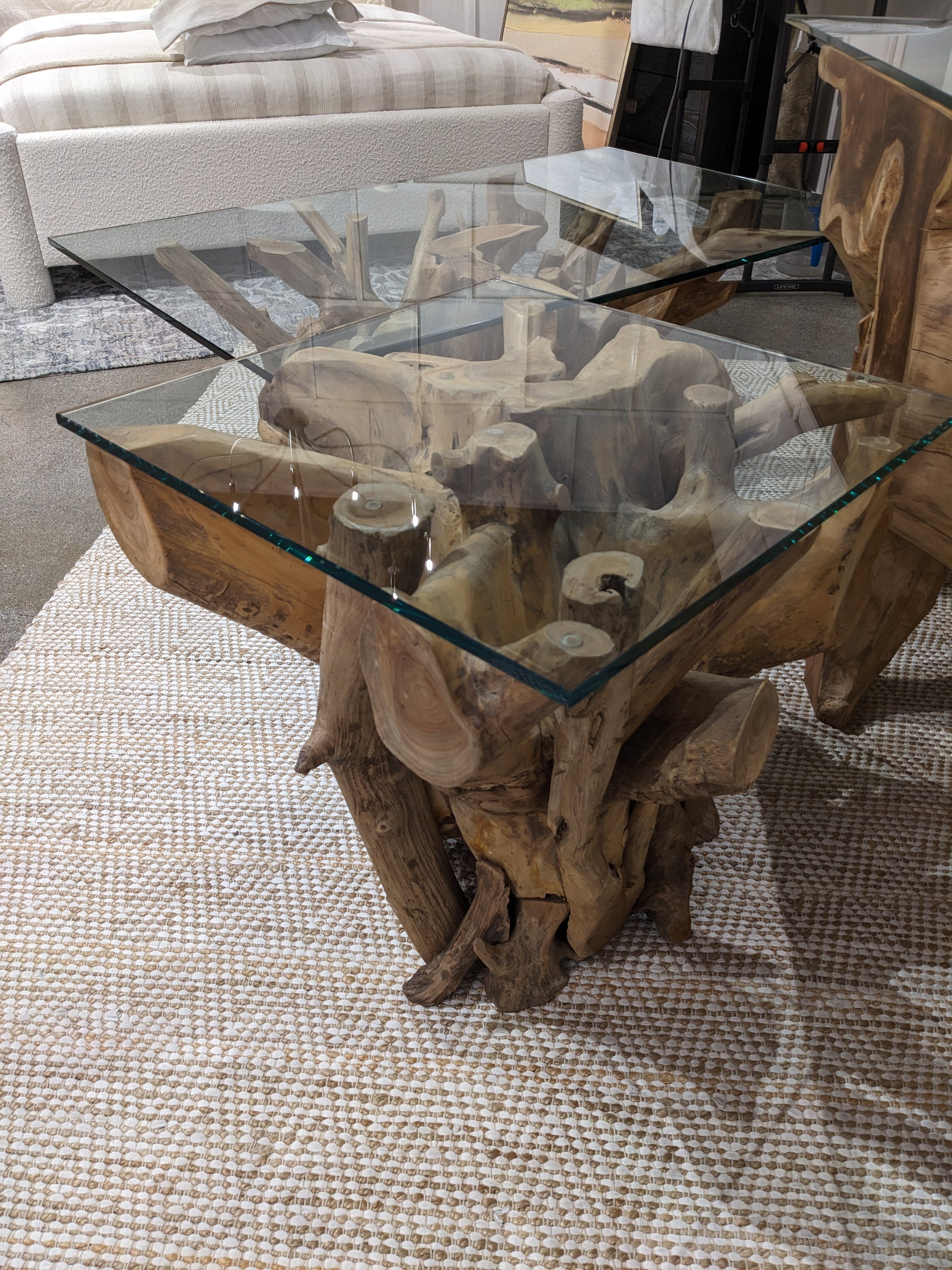 Modus Furniture Jvhs22 One Solid Teak Root Glass Top End Table