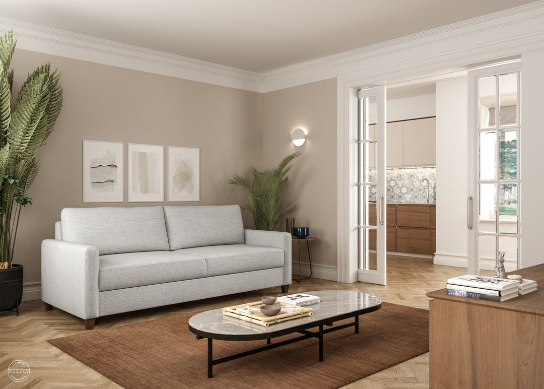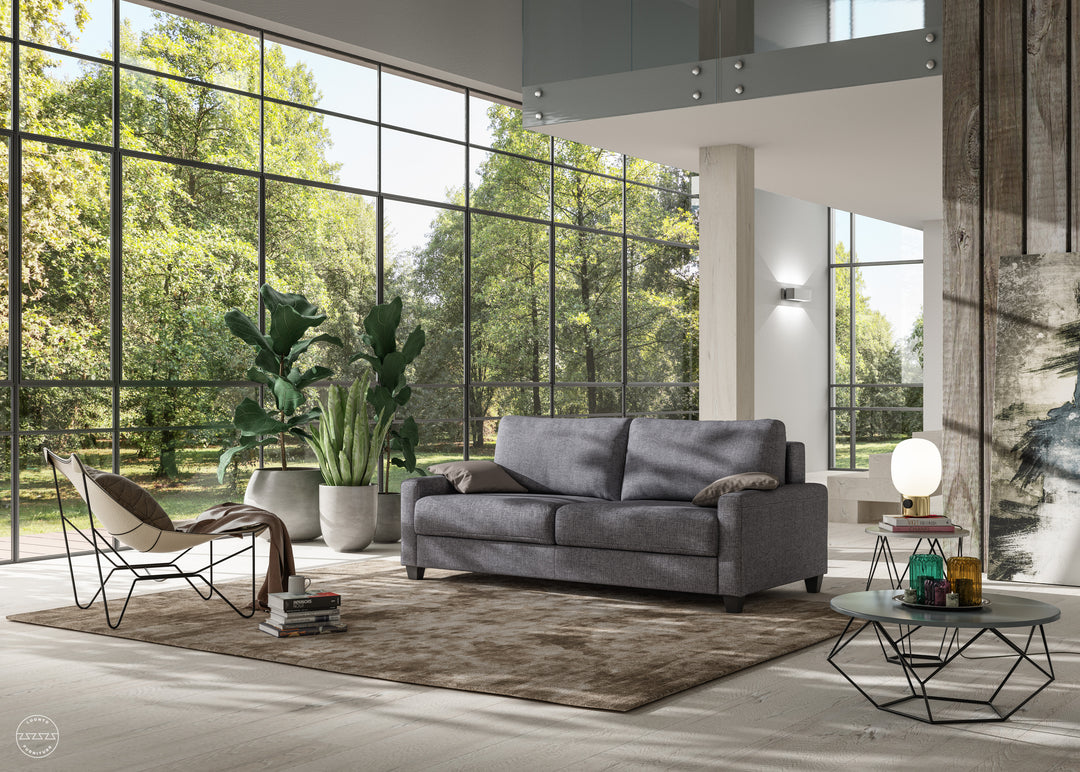The Nest Function is an innovation in sleeper mechanisms, it is increases functionality by splitting the bed into halves, bringing the advantage to converting half the sofa into a bed, while maintaining the sofa as a seat on the closed side.