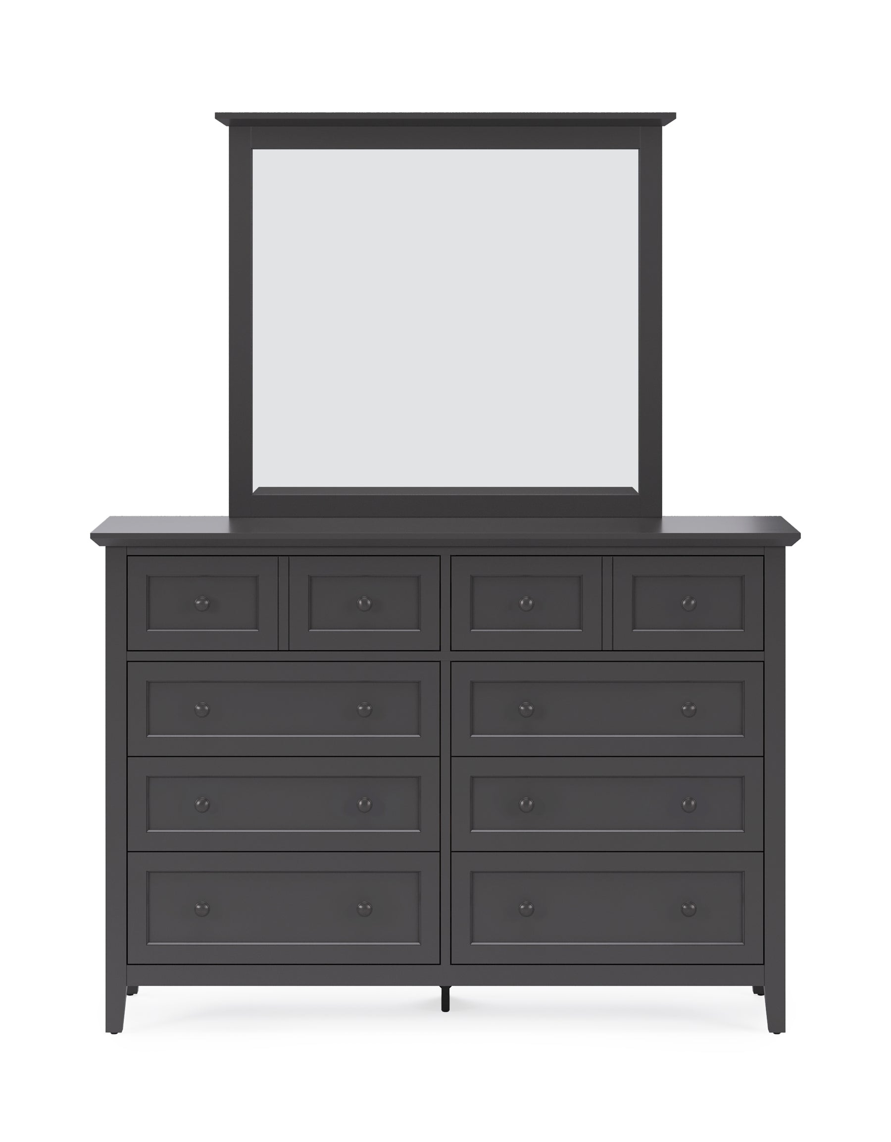 Starting with classic shaker-style drawer fronts, this timeless bedroom collection adds crisp lines and an all-new snowfall white finish to create a look that blends seamlessly with modern, farmhouse, coastal and transitional decor. Gently tapered legs, beveled floating tops and smooth black knobs complete the look.Features: