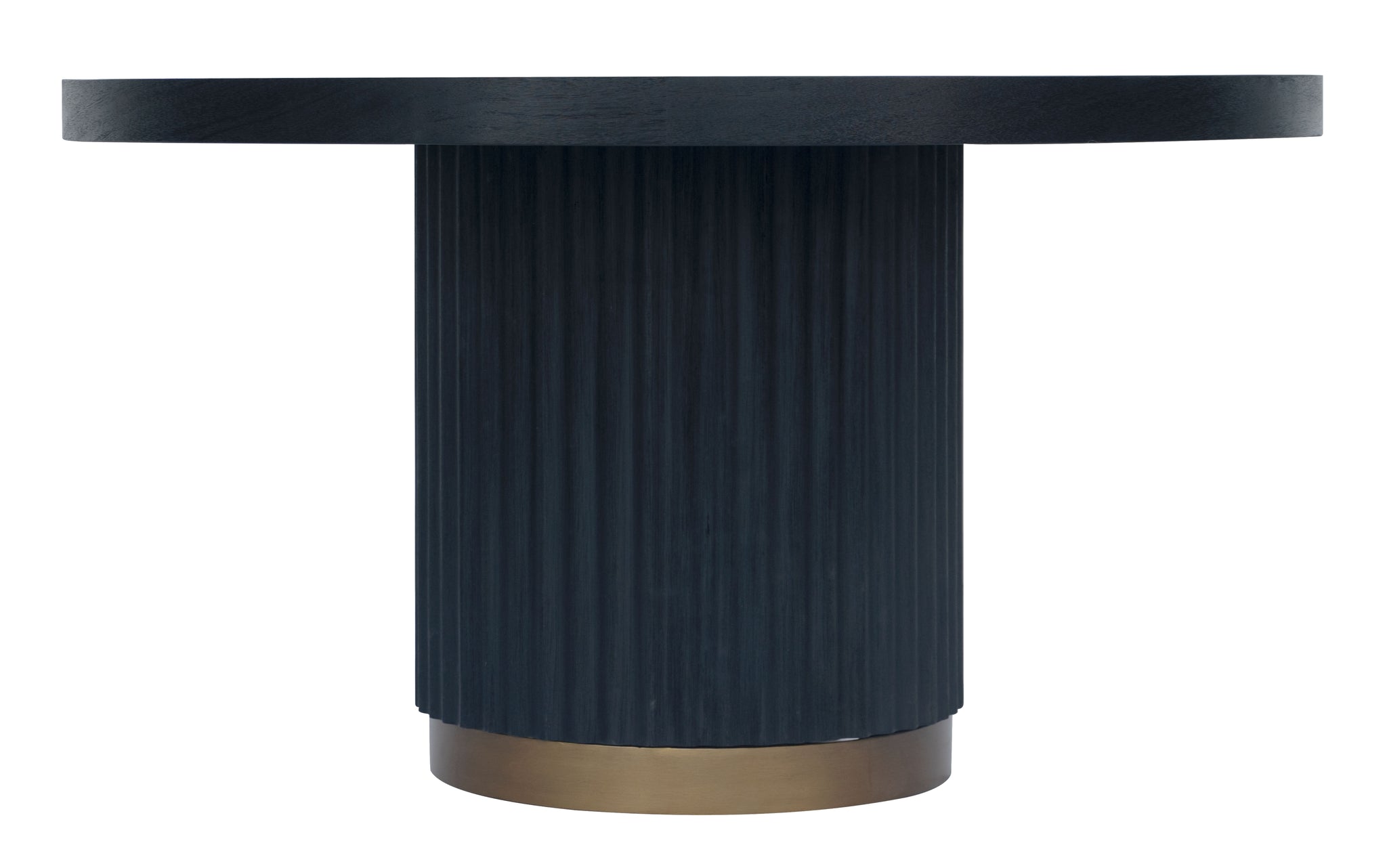 • Brushed brass table base accent matches coordinating pieces and sets off the rich black wood tones