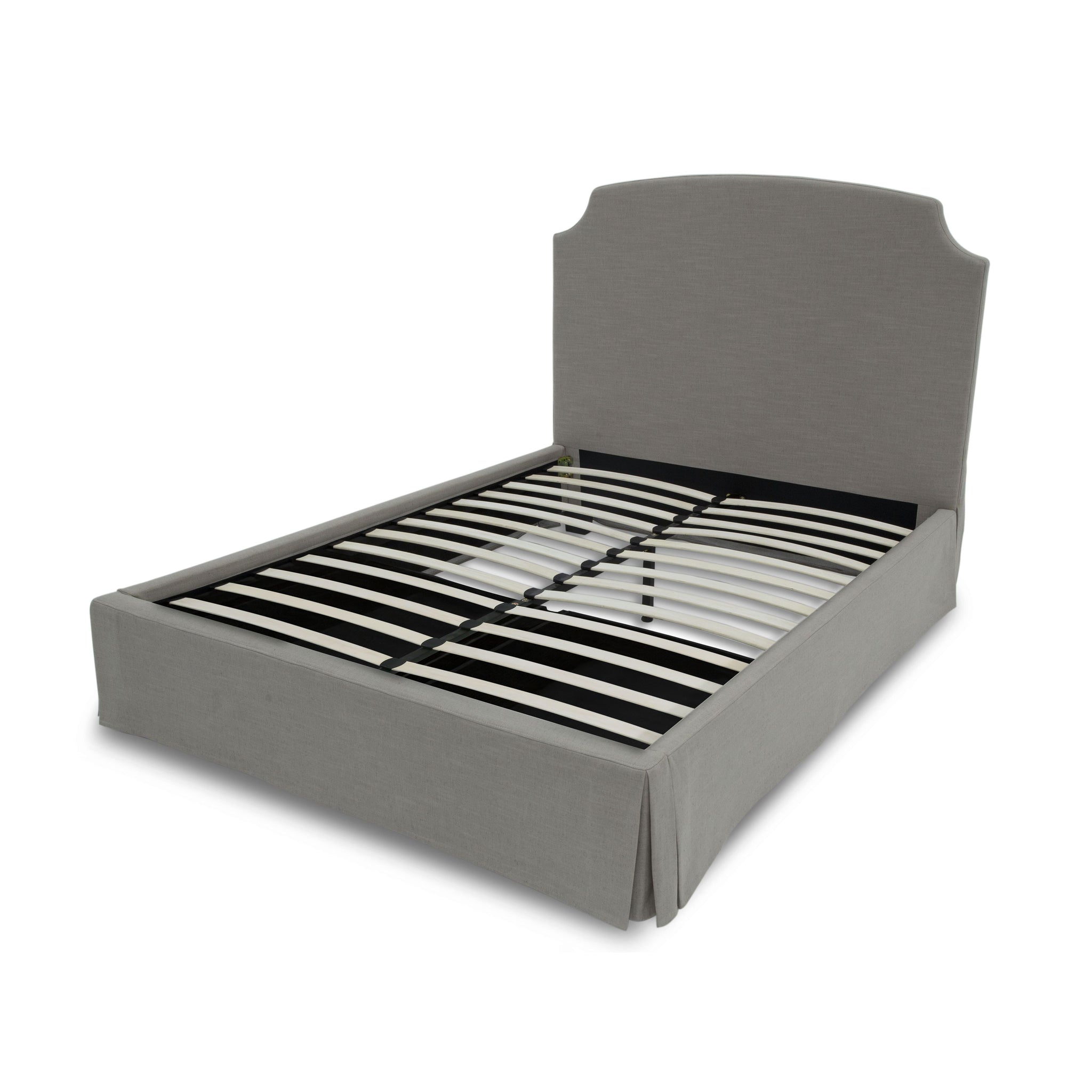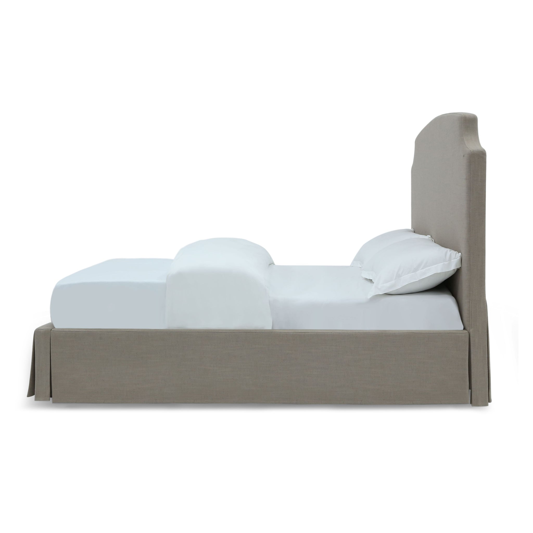 Designed with clean lines in an array of colors, our Juliette upholstered bed collection brings relaxed luxury to your bedroom. Made with solid wood framing, layered foam and soft linen-blend fabric, this group creates a no-maintenance slipcover look with skirted bases and inverted corner pleats. Available in panel, wingback, camelback and clipped corner configurations.