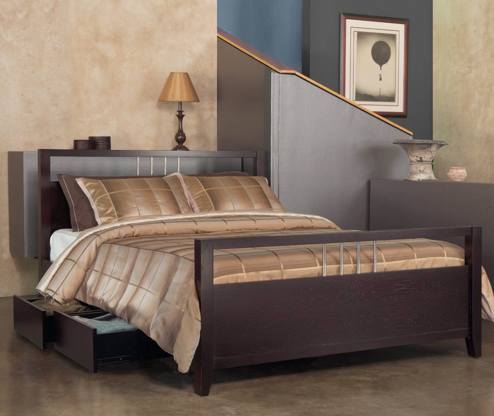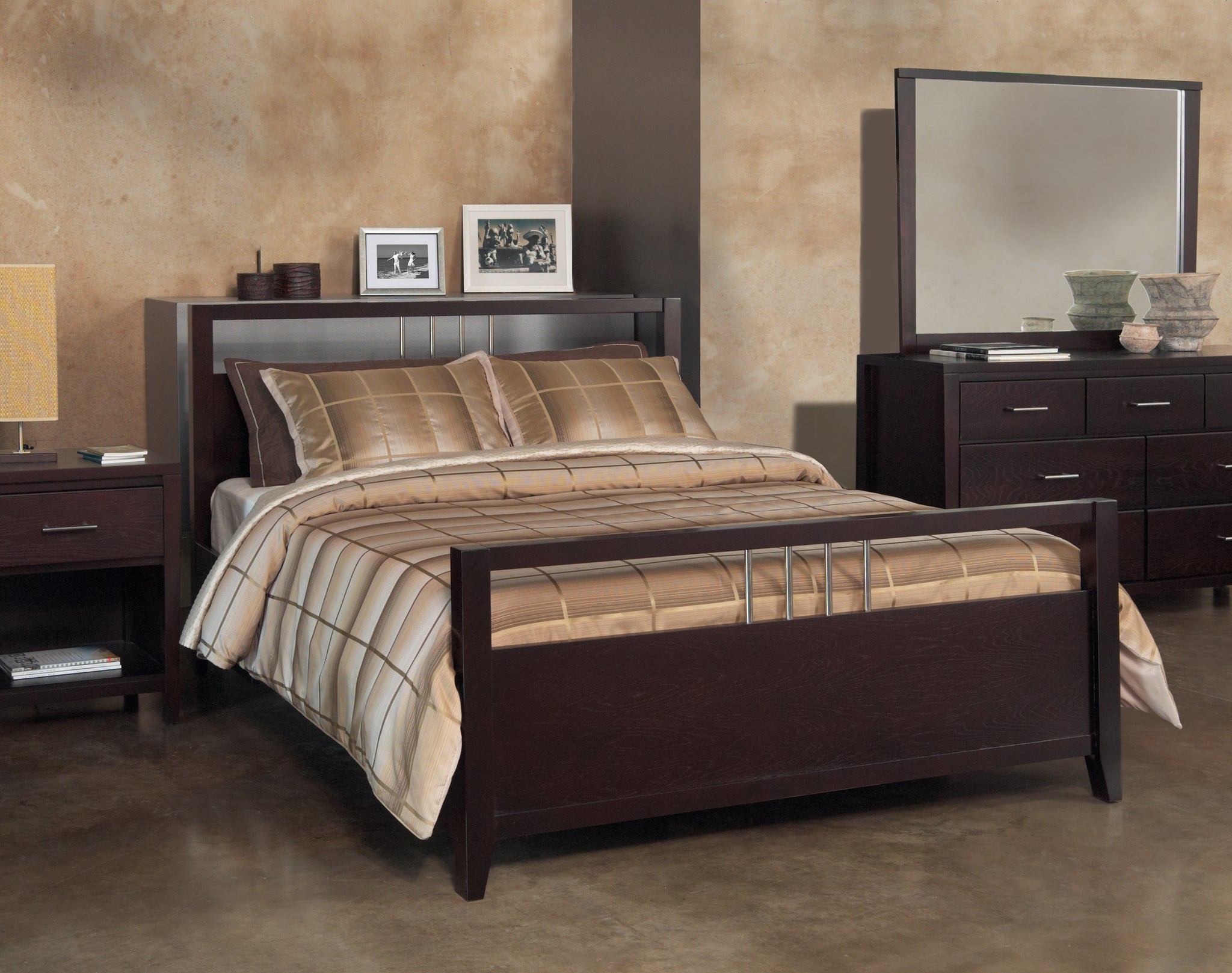 Crafted from Tropical Mahogany solids and a variety of beautiful veneers, the Nevis collection features solid wood drawer boxes with English dovetail joints on both front and back, full extension ball bearing drawer glides, and are corner blocked to ensure rigidity, making them as functional as they are sleek. The wide variety of pieces are enhanced by an elaborate American finishing process in either a rich Spice or a deep, dark Espresso, both complimented by brushed chrome hardware. Together with a vast array of contemporary platform, low profile and sleigh bed styles, the Nevis collection blends the sleek and exotic with the functional.