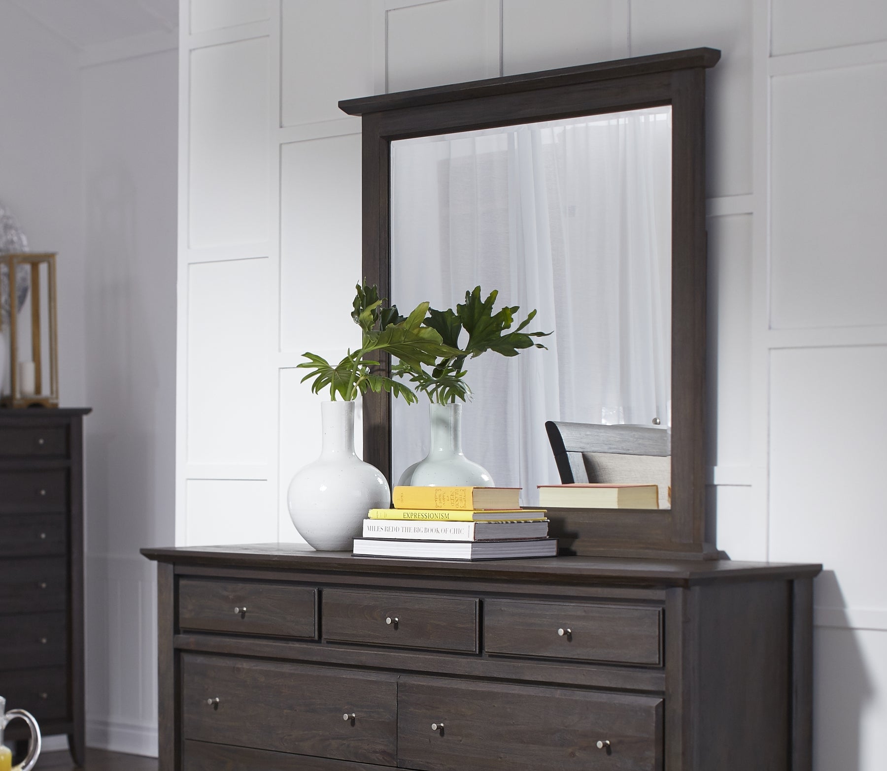 Featuring an all-new Basalt Grey finish and Dolphin linen upholstery, the City II collection is a timeless classic that emphasizes authentic livability. Built from Mahogany solid wood and veneer, signature features include beveled solid wood drawer fronts, floating tops, gently sleighed, padded headboards, and shallow top drawers for storing delicate items.