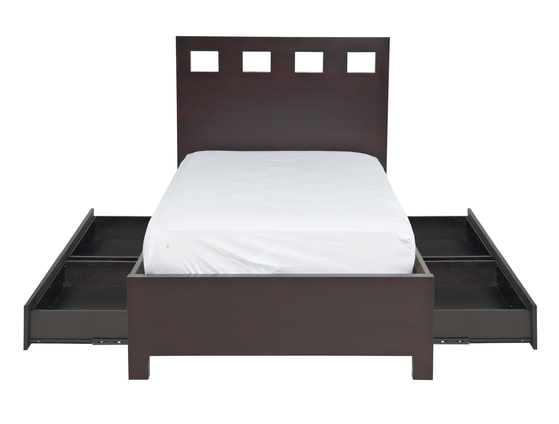 Crafted from Tropical Mahogany solids and a variety of beautiful veneers, the Nevis collection features solid wood drawer boxes with English dovetail joints on both front and back, full extension ball bearing drawer glides, and are corner blocked to ensure rigidity, making them as functional as they are sleek. The wide variety of pieces are enhanced by an elaborate American finishing process in either a rich Spice or a deep, dark Espresso, both complimented by brushed chrome hardware. Together with a vast array of contemporary platform, low profile and sleigh bed styles, the Nevis collection blends the sleek and exotic with the functional.Features: