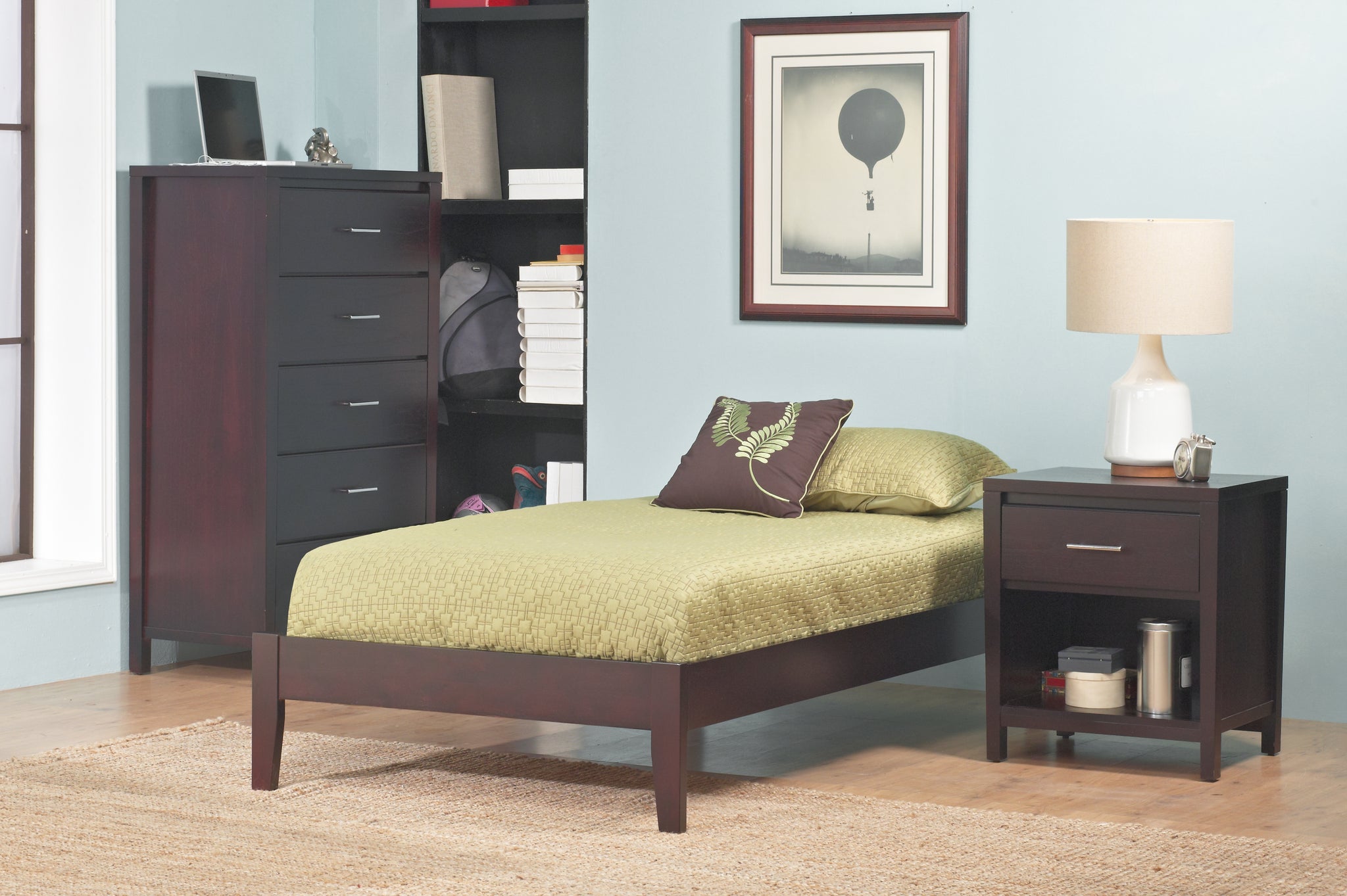 Crafted from Tropical Mahogany solids and a variety of beautiful veneers, the Nevis collection features solid wood drawer boxes with English dovetail joints on both front and back, full extension ball bearing drawer glides, and are corner blocked to ensure rigidity, making them as functional as they are sleek. The wide variety of pieces are enhanced by an elaborate American finishing process in either a rich Spice or a deep, dark Espresso, both complimented by brushed chrome hardware. Together with a vast array of contemporary platform, low profile and sleigh bed styles, the Nevis collection blends the sleek and exotic with the functional.