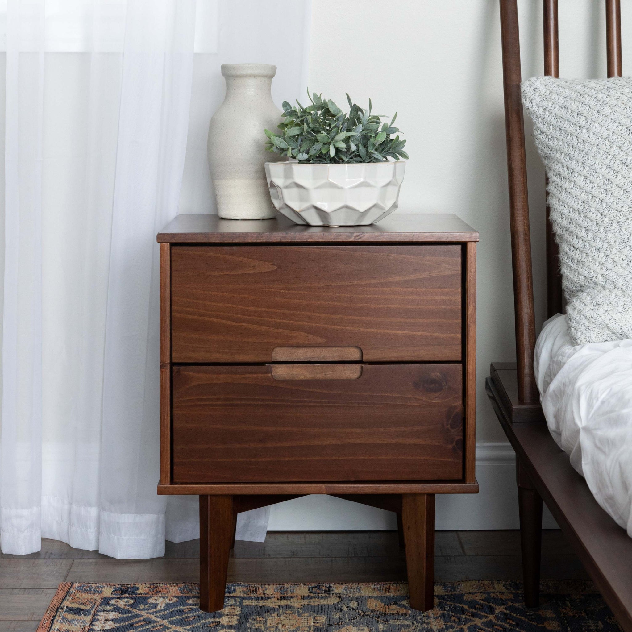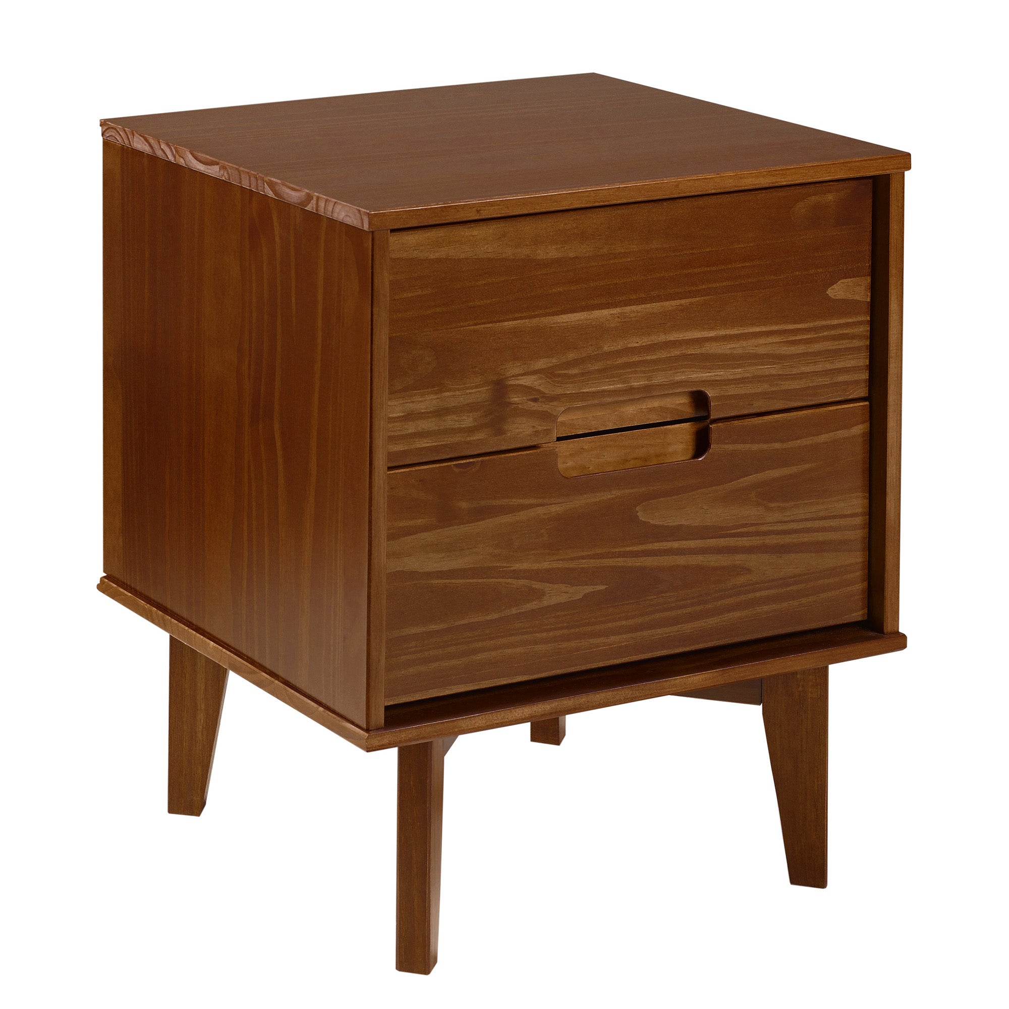 Bring timeless design and everyday function into your home with this versatile nightstand. Crafted from solid pine wood and finished in a rich stained tone, it blends mid-century modern style with transitional appeal. The sleek silhouette is enhanced by subtle cutout handles, giving it a clean, contemporary look. Perfect for use as a nightstand in the bedroom, or as a stylish side or end table in the living room, it offers flexible placement to suit your space.