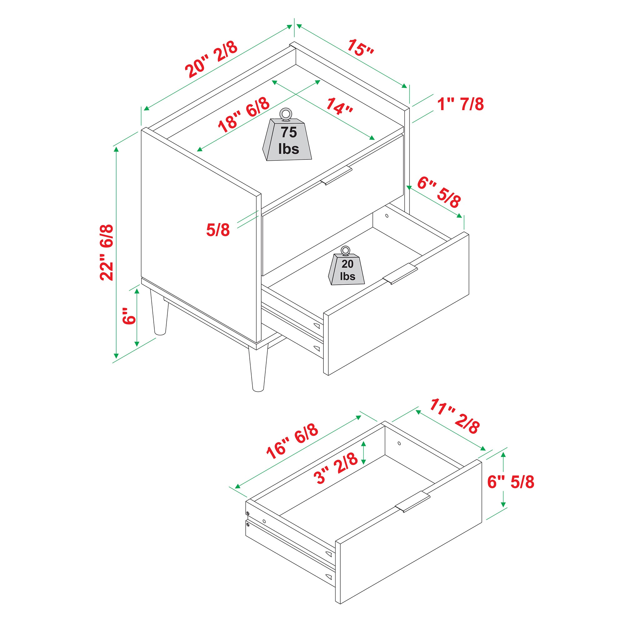 Streamlined and modern, this two-drawer nightstand is designed to complement any interior style. Crafted from responsibly sourced solid pine wood and supported by a powder-coated steel frame, it combines durability with eco-conscious design. The ultra-modern gallery top and sleek hardware add a touch of sophistication, while smooth-gliding drawers provide practical storage for bedside or living room essentials.