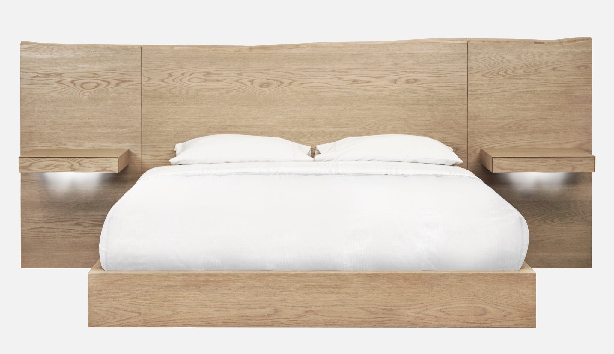 • Distinctive bed includes integrated floating nightstands