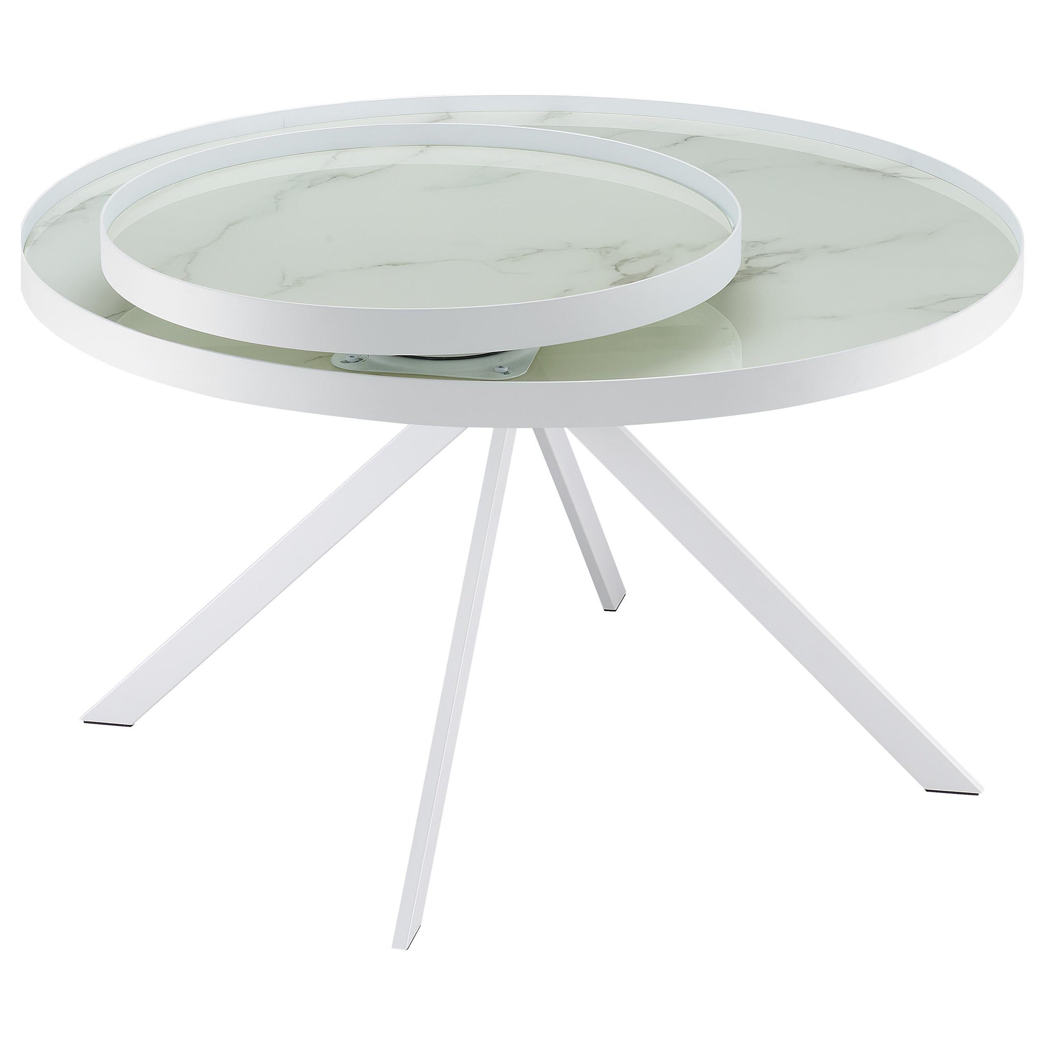 Briggs Round Marble Printed Glass Top Coffee Table White