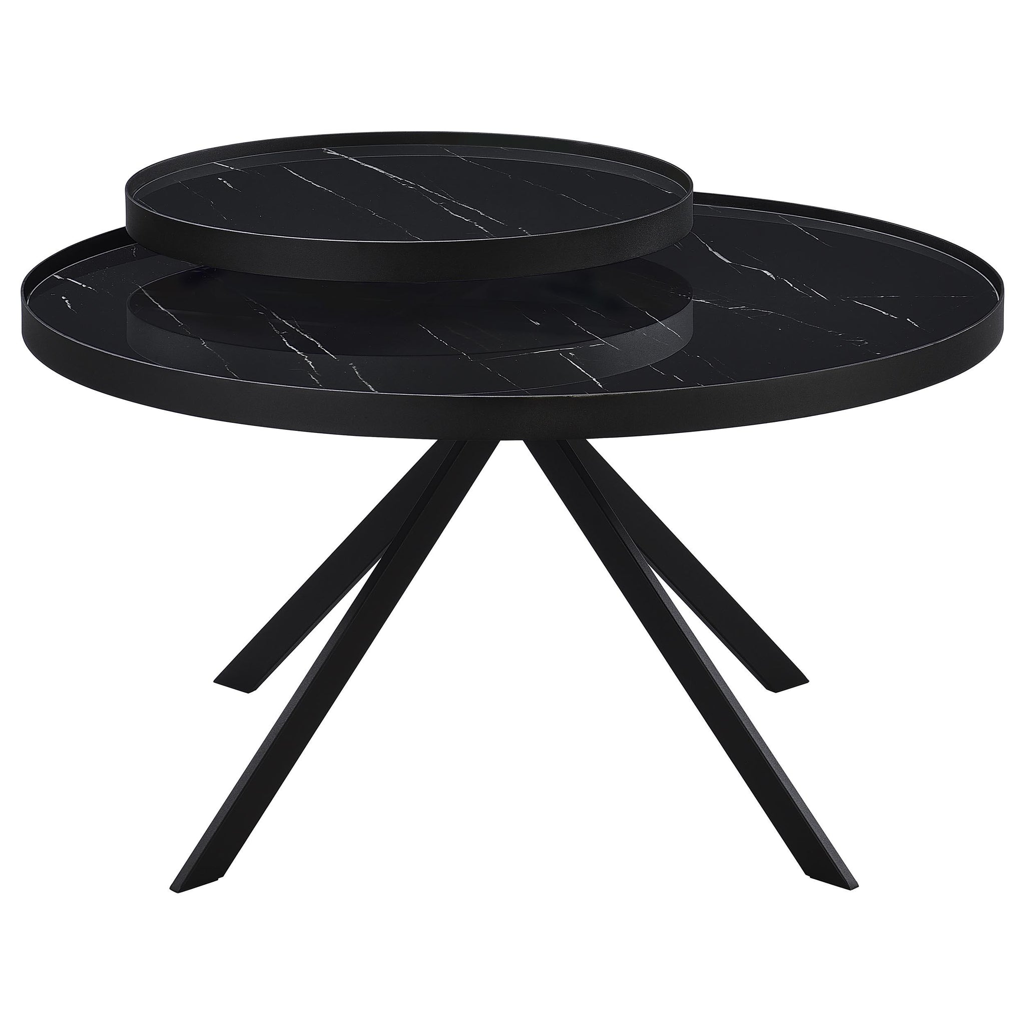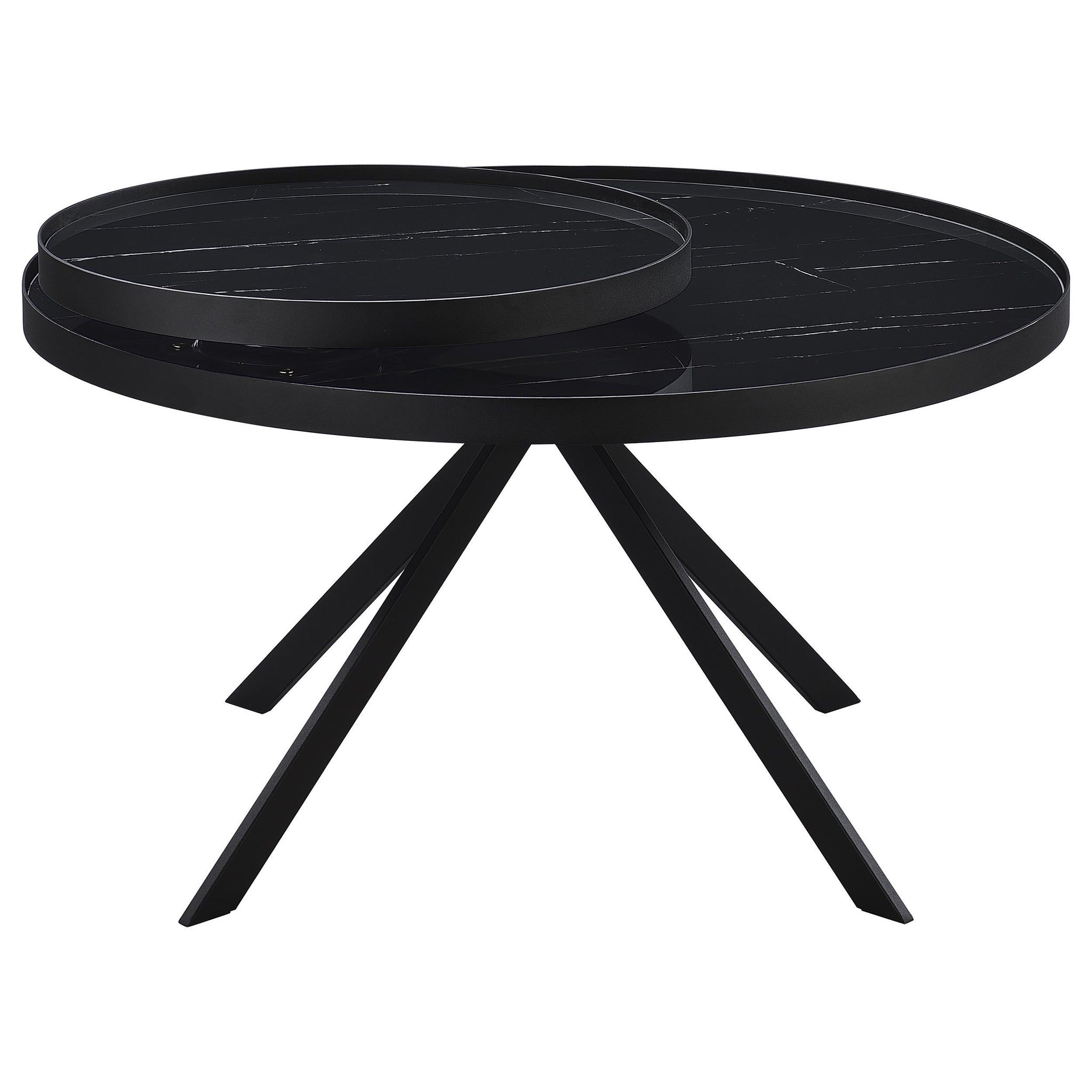 Coaster Furniture 706268 Briggs Round Marble Printed Glass Top Coffee Table Black