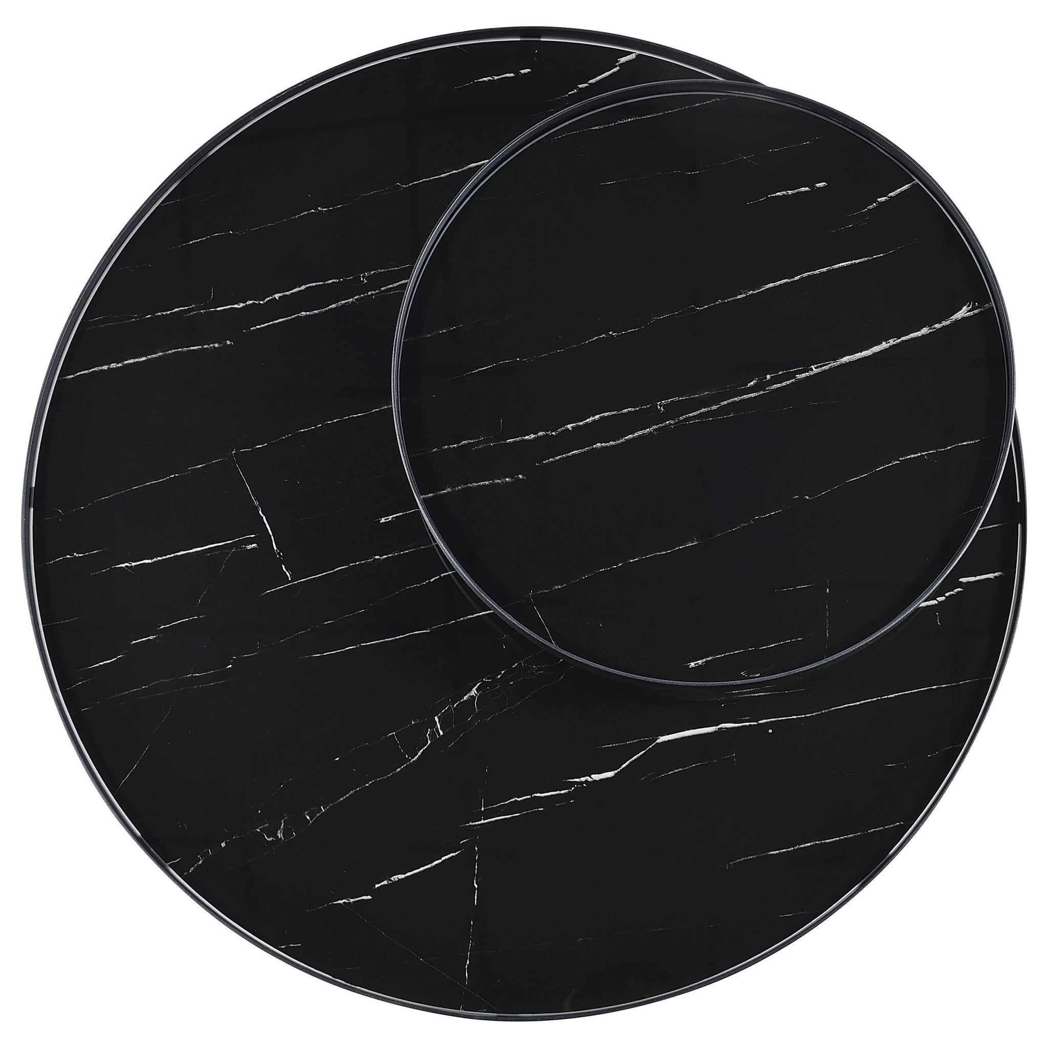 Briggs Round Marble Printed Glass Top Coffee Table Black
